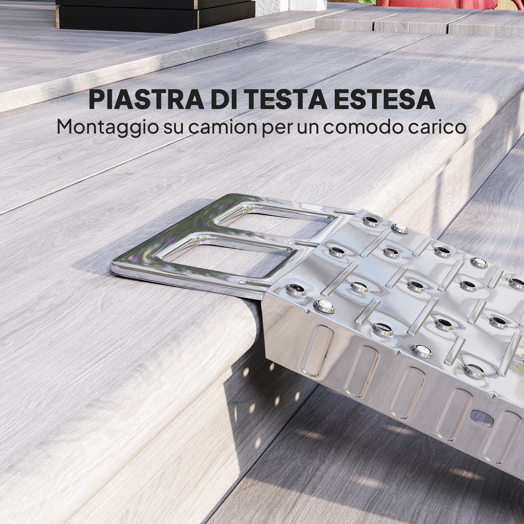 Rampa di Carico Pieghevole e Antiscivolo per Moto con Cinghia di Sicurezza in Acciaio Argento