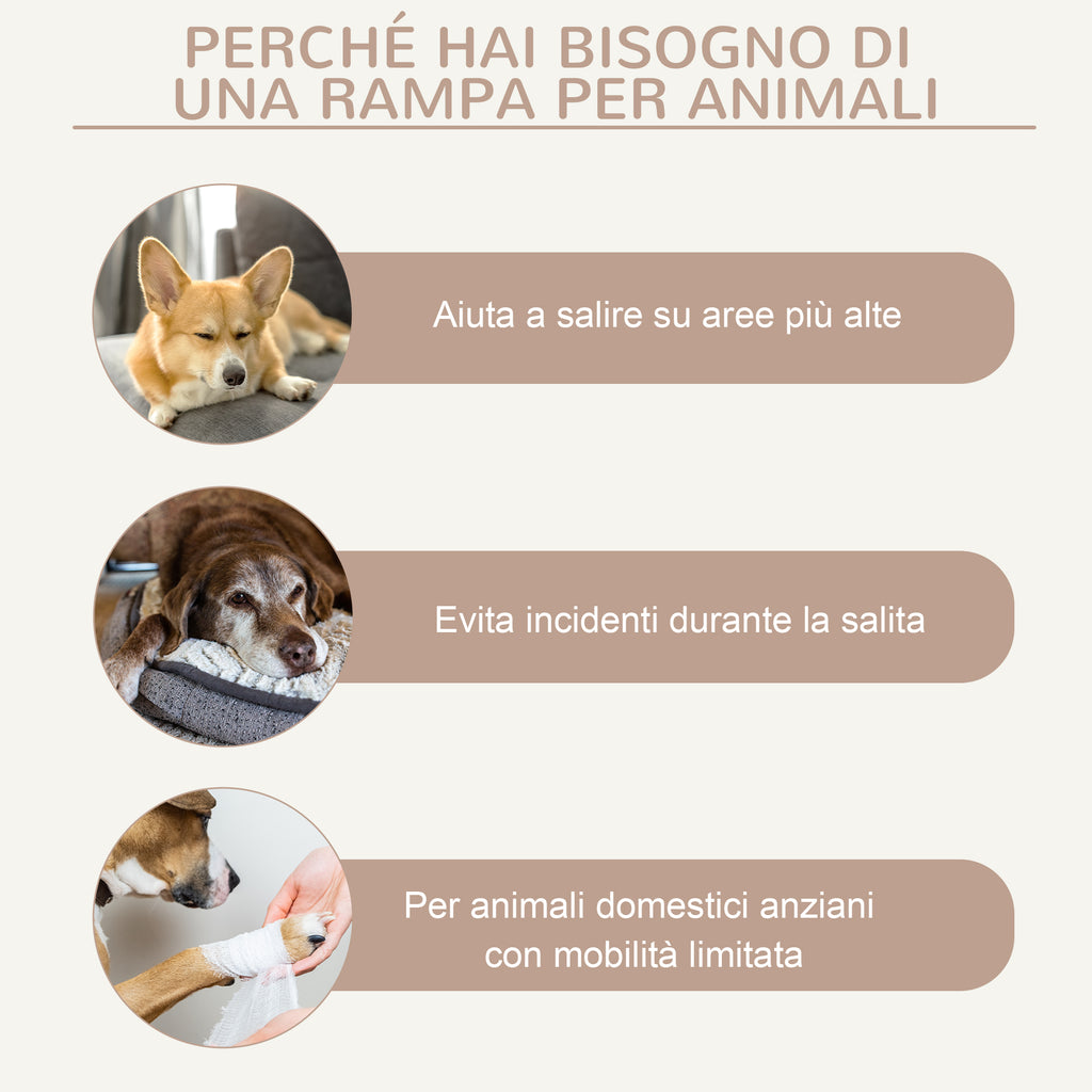 - RAMPA PER CANI: Questa pedana è adatta per cani anziani o con difficoltà motorie, e permette loro di raggiungere facilmente ogni punto alto senza sforzarsi