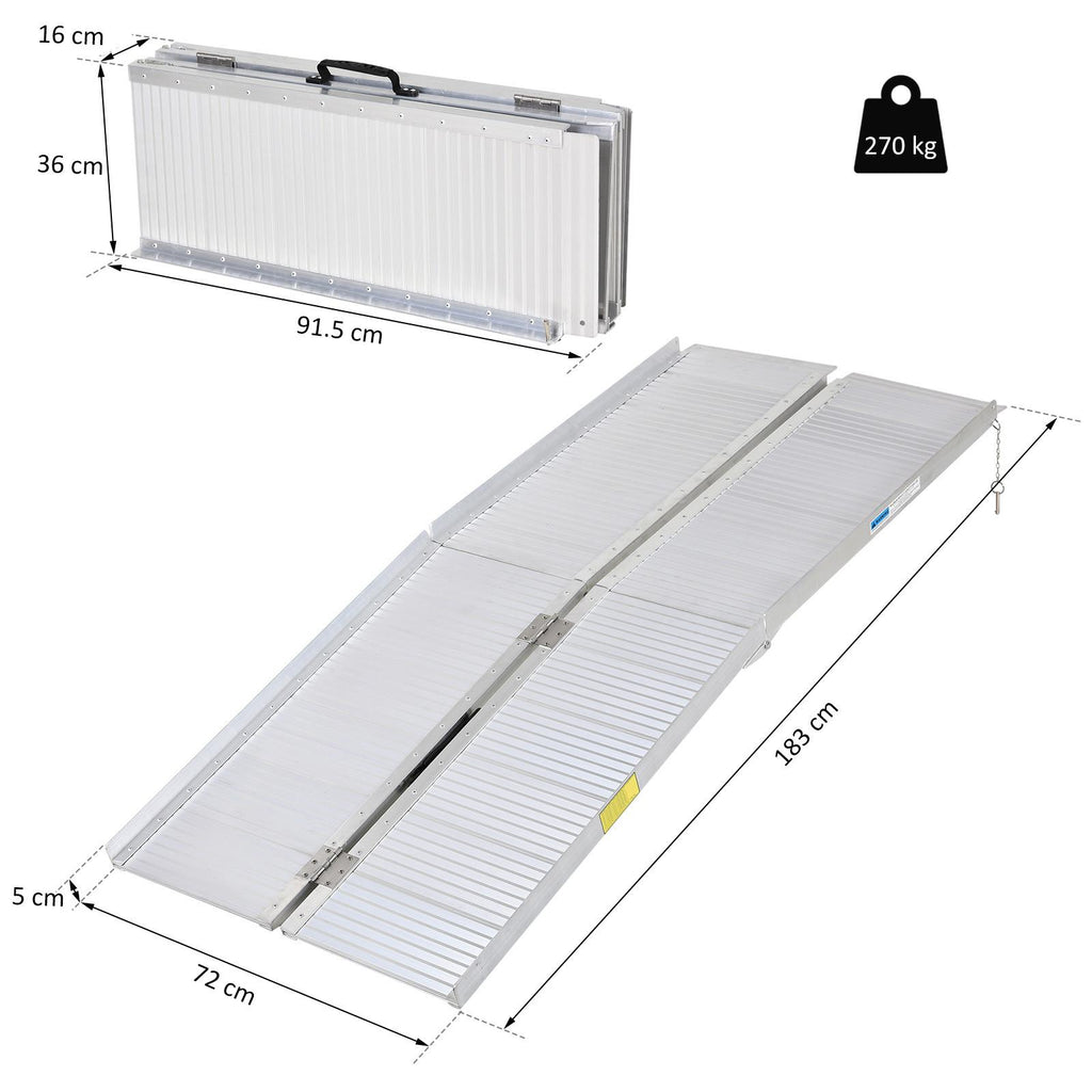 Rampe für Faltrollstuhl Max 270 Kg aus rutschfestem Aluminium