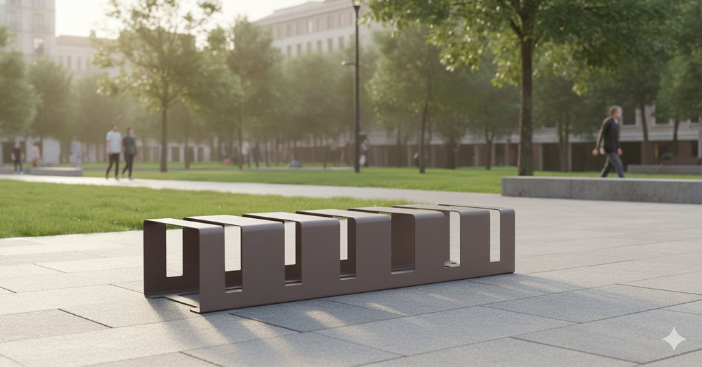 Questa rastrelliera portabiciclette, per arredo urbano bifacciale, a 5 posti, vi consente di parcheggiare con poco ingombro le vostre biciclette e mantenerle in ordine e al sicuro. Realilzzato in metallo trattato e verniciato.