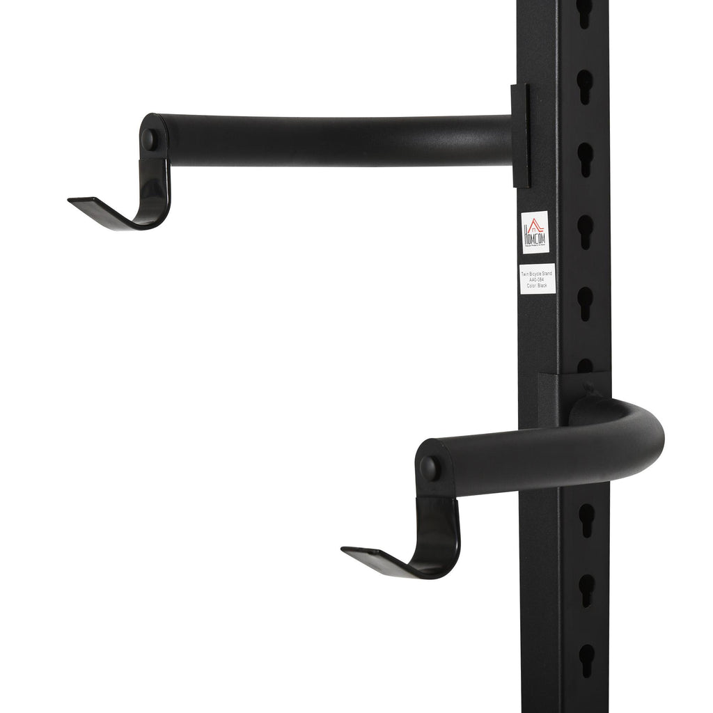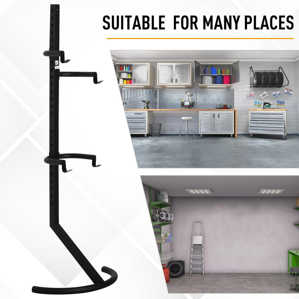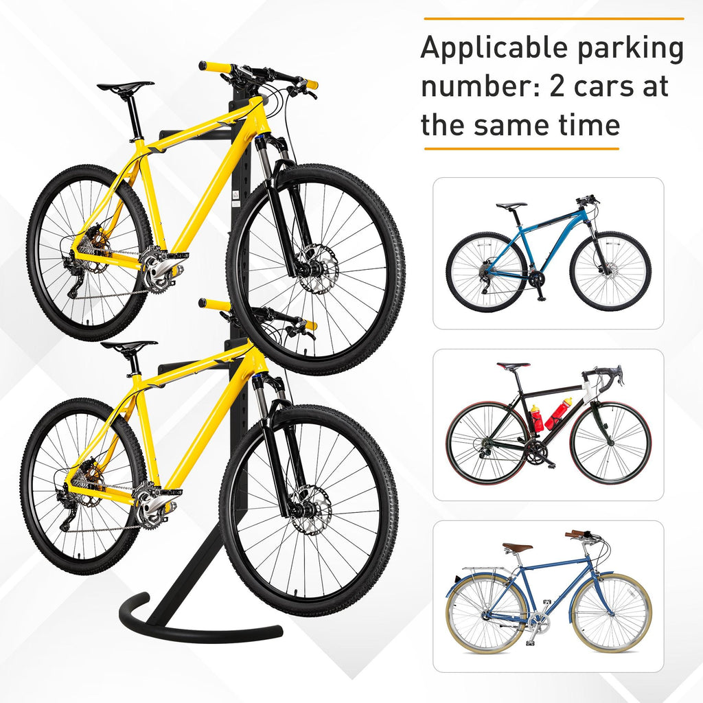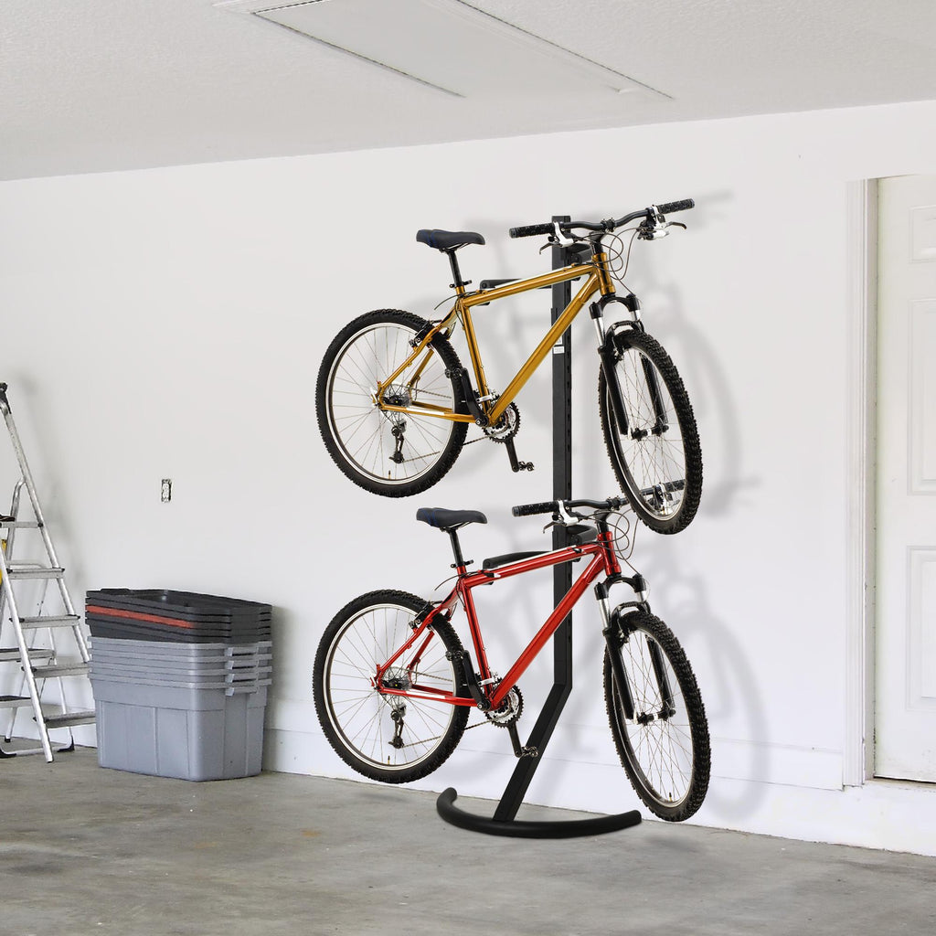 Sie wissen nie, wo Sie Ihr Fahrrad abstellen sollen? Mit dieser Staffelei stehen Ihnen und Ihrer Familie 2 Stationen zur Verfügung! Aus Stahl mit schwarzer und rostfreier Oberfläche. Mit 27 Löchern können Sie die Haken an Fahrräder anpassen. Platzieren Sie diesen Fahrradständer in Ihrem Hinterhof, Ihrer Garage oder Ihrem Garten und geben Sie Ihren Fahrrädern ein neues Zuhause!