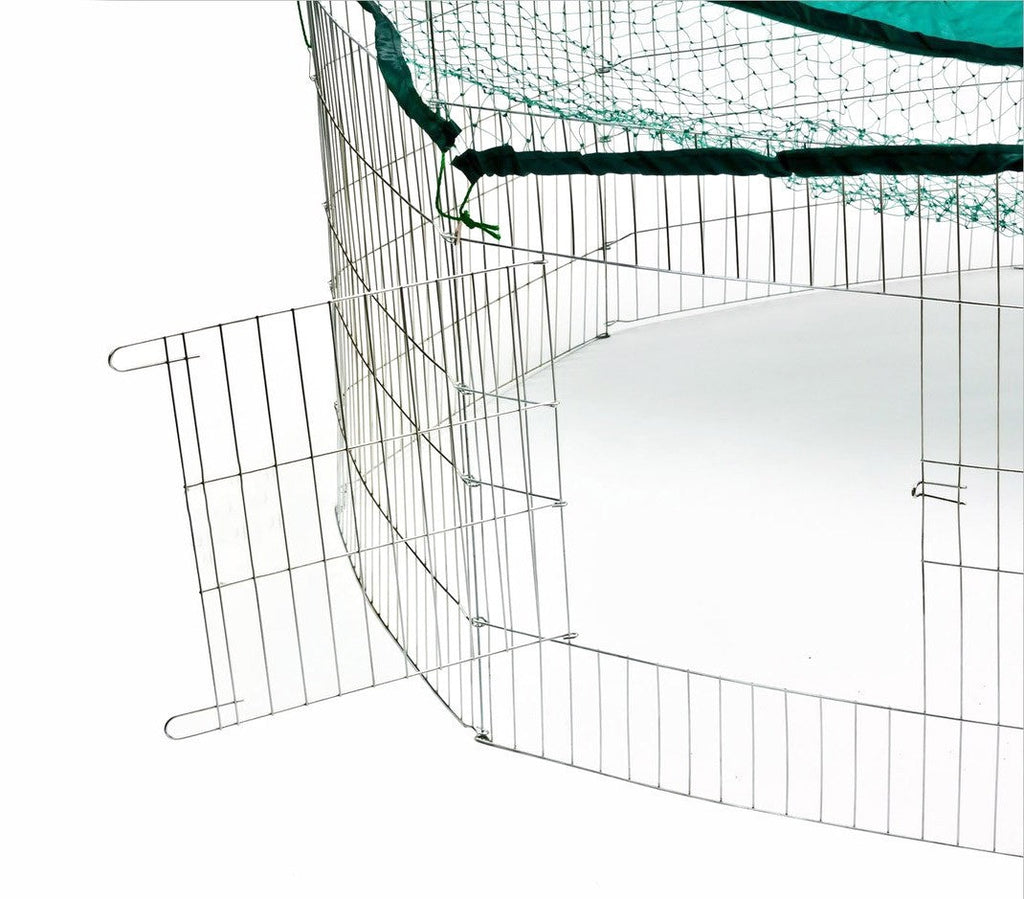 Mit diesem geräumigen achteckigen Gehege können sich jetzt auch Ihre Vierbeiner frei und sicher im Freien bewegen! Bestehend aus acht Elementen aus verzinktem Metall, einfach zu montieren und leicht zu transportieren. Dank der Heringe können die acht Zaunelemente fest auf Gras oder harten Oberflächen befestigt werden. Eines der Elemente des Geheges ist mit einer praktischen Eingangstür ausgestattet, durch die Ihr Kleintier problemlos eintreten oder untergebracht werden kann. Das Abdecktuch spendet Ihrem Haustier einen angenehmen Schatten, denn die Oberfläche besteht zur Hälfte aus festerem Material, um einen ausreichenden Schutz vor der Sonne zu gewährleisten, während die andere Hälfte aus einem Netz besteht. Es ist möglich, den Zaun auch mit weniger Elementen zu montieren.