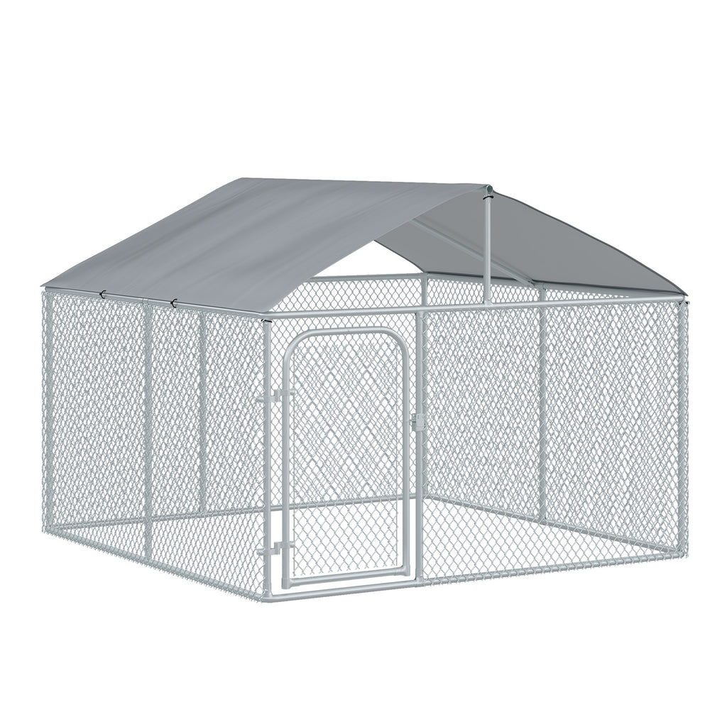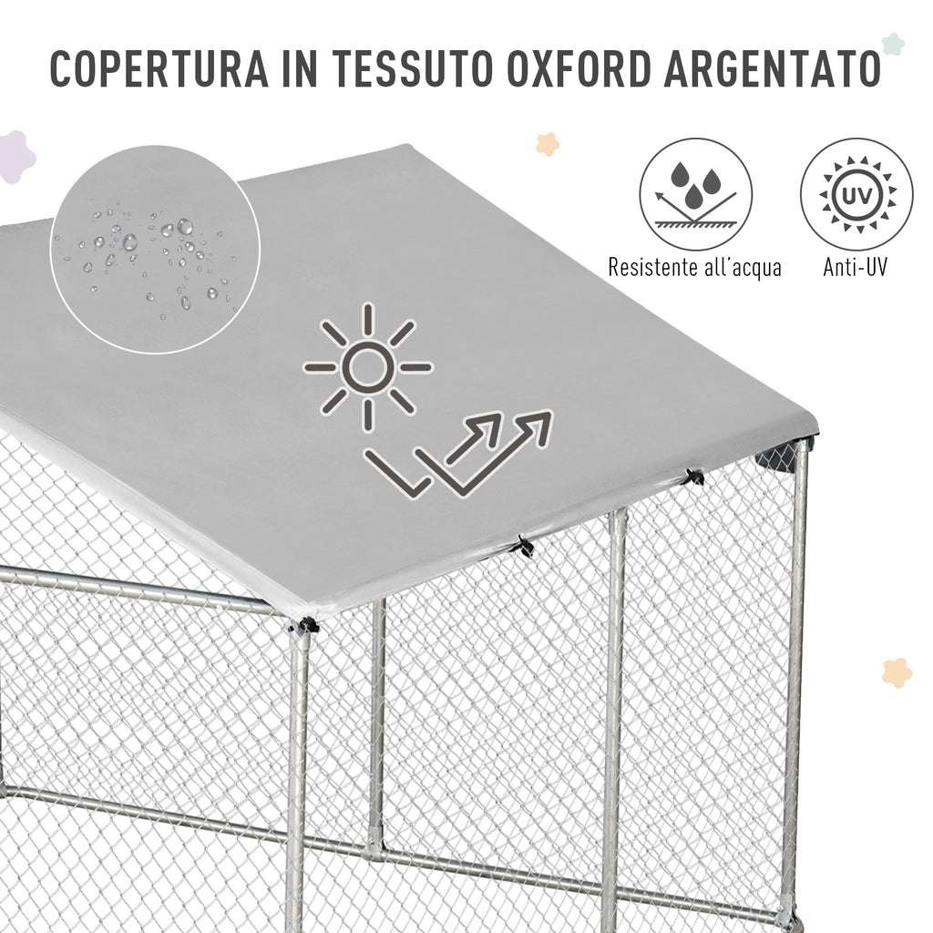 Schützen Sie Ihren Hund mit diesem Außengehege, auch wenn Sie nicht zu Hause sind! Aus verzinktem Netz und mit einem wasserdichten und UV-beständigen Stoffbezug ausgestattet, ist es perfekt, um Ihren vierbeinigen Freund vor Wetter und Sonne zu schützen.