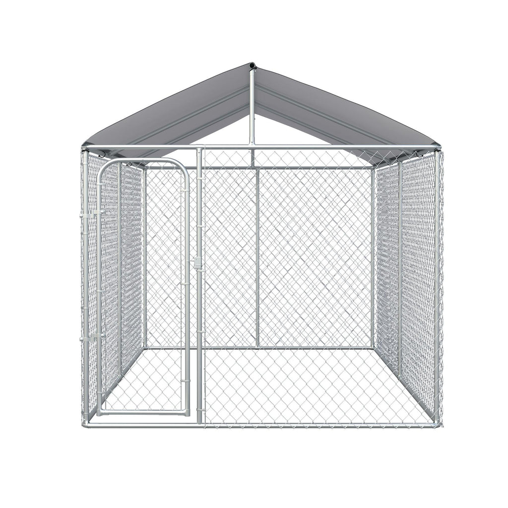 Lassen Sie Ihre Haustiere dank der Hundehütte frei und sicher im Freien, wenn Sie nicht zu Hause sind. Es hat einen soliden verzinkten Metallrahmen, der stabil und langlebig ist. Diese Hundebox ist mit einer abschließbaren Tür ausgestattet, um ein versehentliches Öffnen zu verhindern und Ihre vierbeinigen Freunde sicher zu halten. Das Dach aus Oxford-Stoff schützt Ihre Hunde vor Sonne, UV-Strahlen und Regen. Das Gehege eignet sich auch für mittelgroße Tiere, wie Enten, Hühner etc.