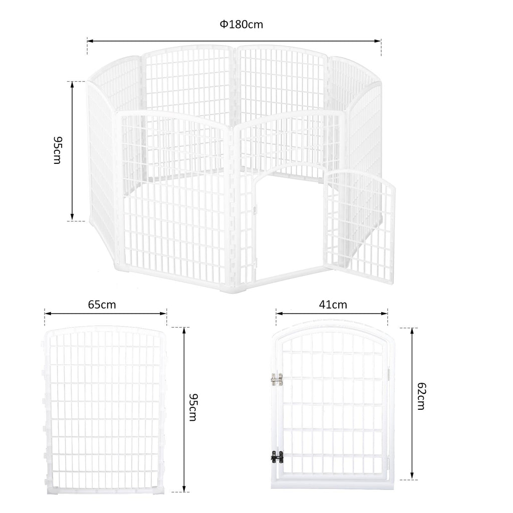 Laufstall für Haustiere, Hunde, Katzen, Kaninchen, Nagetiere, 8 Paneele, Durchmesser 180 cm, Höhe 95 cm, strapazierfähiger Kunststoff-Laufstall, Sicherheitsbereich zum Bewegen, Spielen, Schlafen