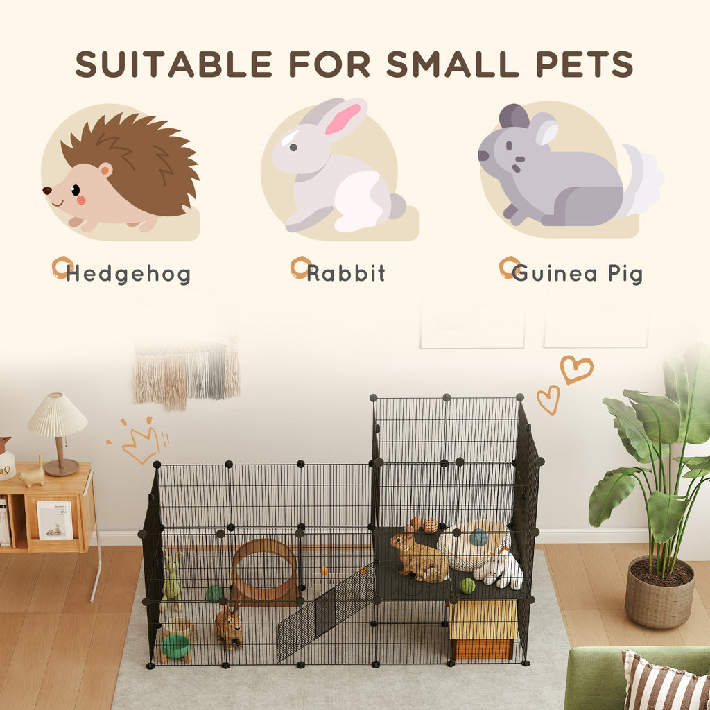 Grazie a questo recinto per animali, i piccoli roditori godranno di un ambiente spazioso e protetto. La struttura è dotata di 39 pannelli per adattarsi a varie forme e misure e inserirsi in ogni spazio. La struttura in metallo e resina PP è solida e le fascette garantiscono ulteriore stabilità per la sicurezza degli animali. Il recinto si rivela perfetto per conigli, porcellini d'India e ricci, dando tutto lo spazio necessario su più livelli per giocare, riposare e nutrirsi. I 39 pannelli del recinto per roditori permettono di creare forme diverse. Sono inclusi 35 pannelli in rete e 4 pannelli in resina. Il design modulare permette un montaggio leggero e facile con un martello. La forma raccomandata del recinto per animali 2 x 4 ottimizza l'efficienza dello spazio. Le aree su 2 livelli collegate tramite rampa della gabbia per roditori aumentano lo spazio di movimento. La distanza ridotta tra le barre del recinto per cuccioli garantisce la sicurezza degli animali. Gabbia per animali dotata di 12 piedini antiscivolo per garantire stabilità.