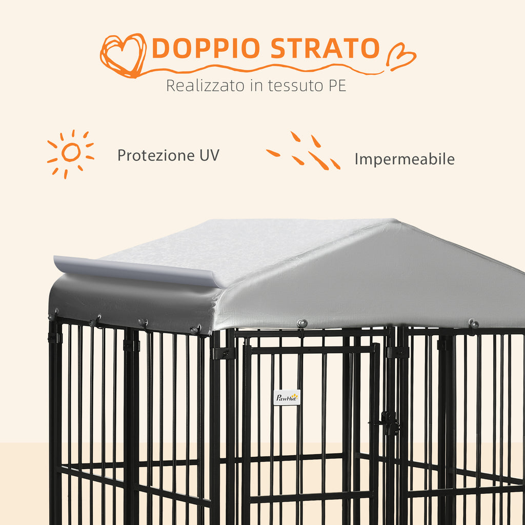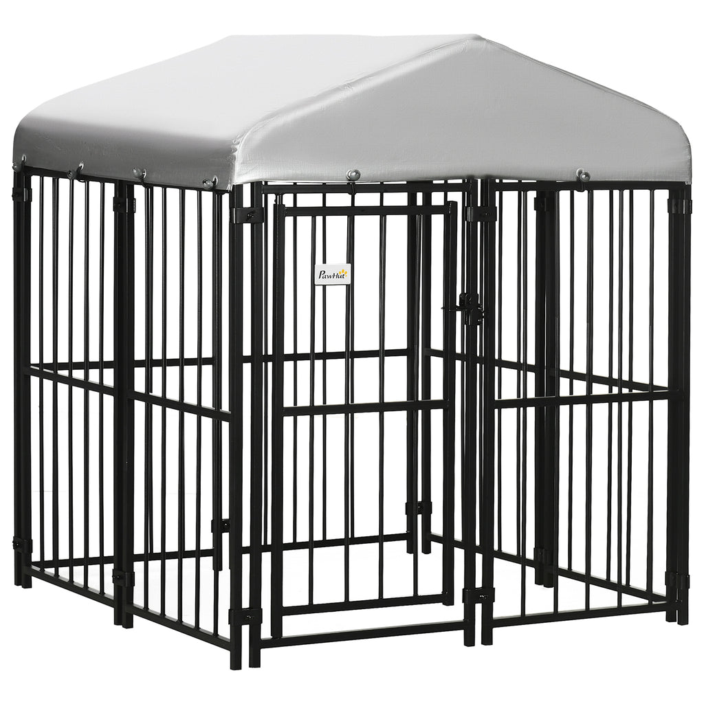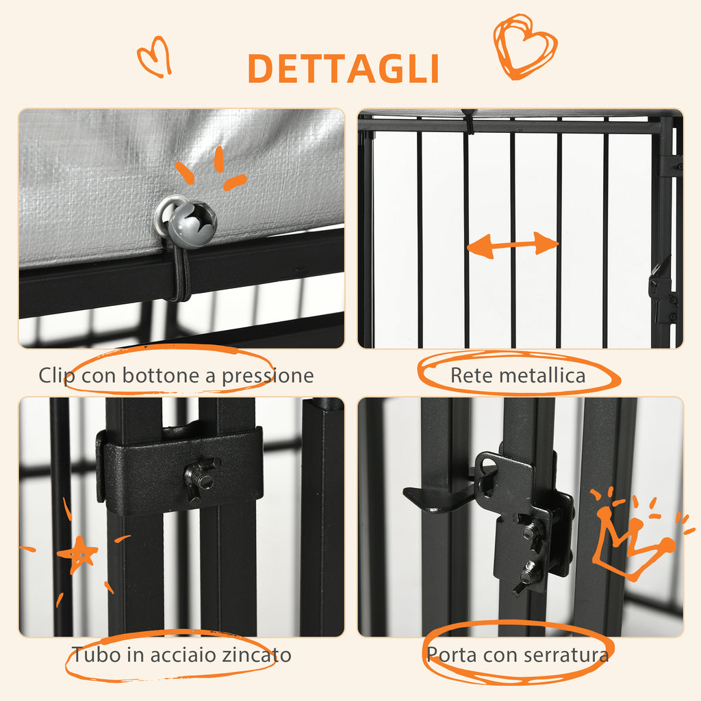 Recinto per Cani di Piccola e Media Taglia 122x122x138 cm con Tettuccio in Acciaio Nero