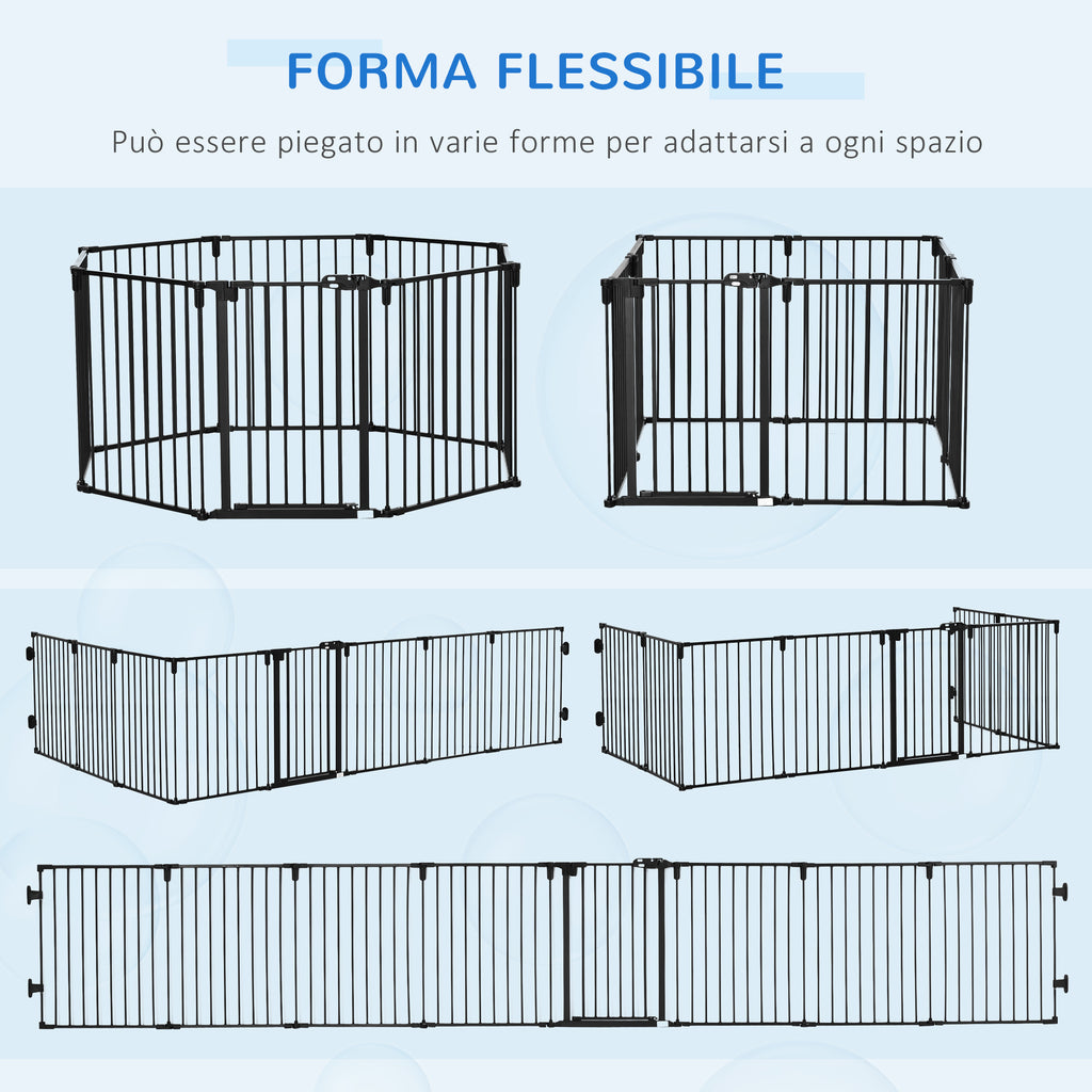 Faltbarer Zaun für Hunde und Katzen 482,5 x 2 x 76 cm, 8 Sektionen aus schwarzem Stahl