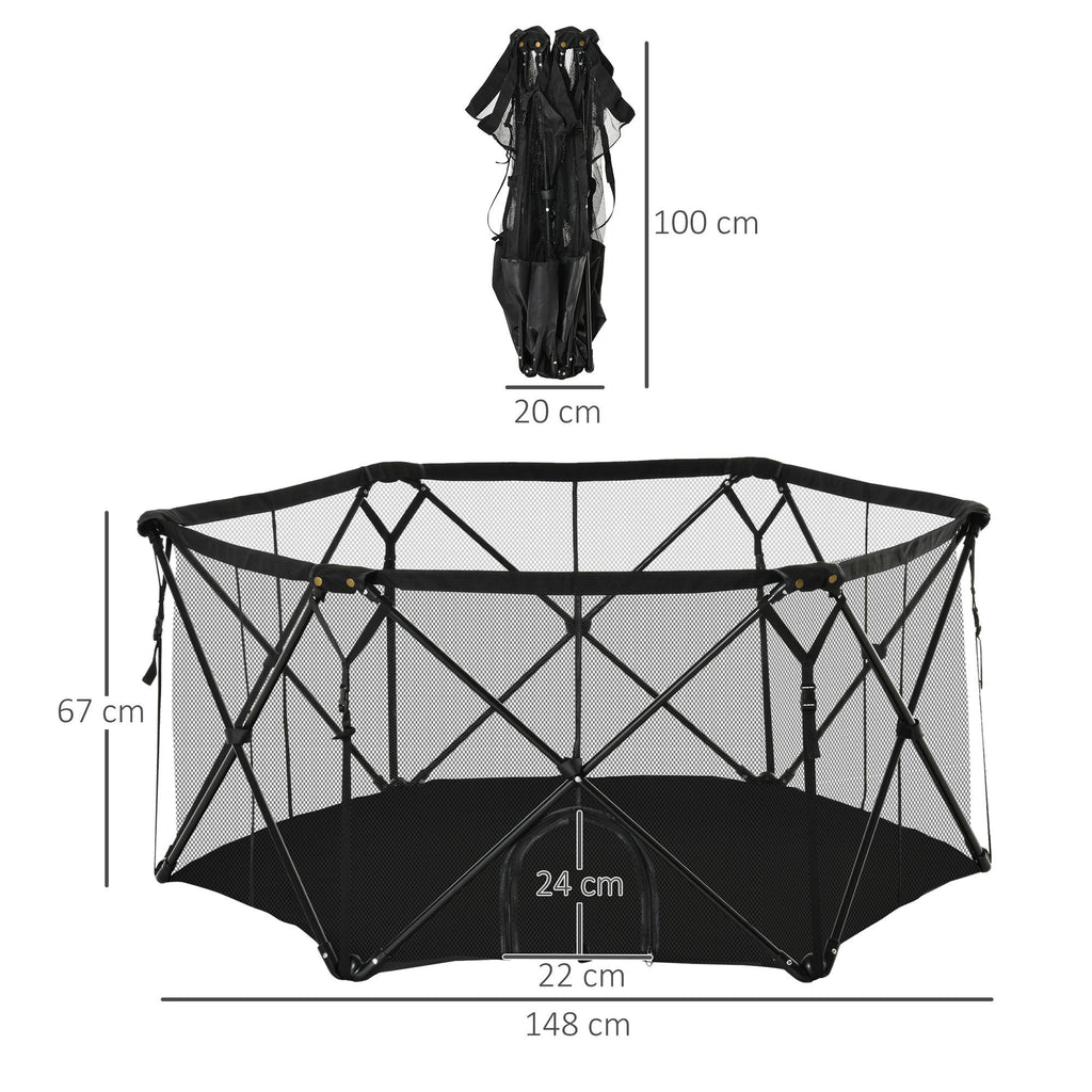 Faltbarer Hundezaun 148 x 134 x 67 cm aus Stahl und schwarzem Stoff