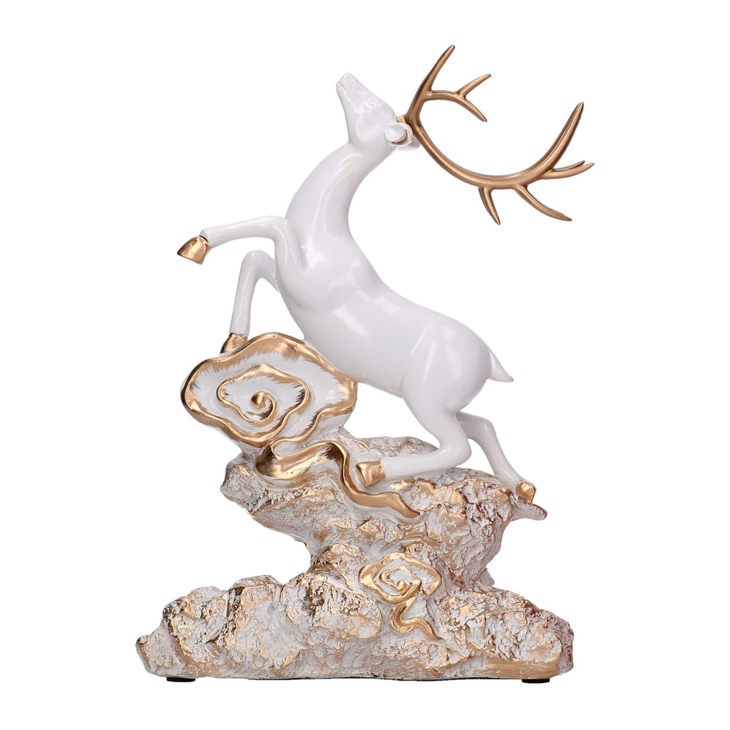 Renna resina su rocce oro e bianco cm 20x7,5xh27,5