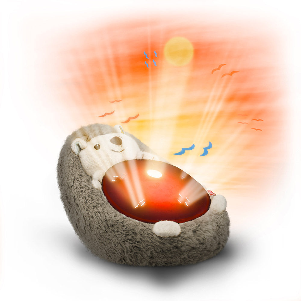 Il riccio peluche con proiettore multifunzione integrato è un giocattolo perfetto per creare un'atmosfera magica nella stanza del bimbo. Grazie ai suoi raggi di luce e agli uccellini che si librano nell'aria, trasforma la stanza in un tramonto africano animato. Il ciclo di 30 minuti prevede tre fasi, in cui i volatili vanno via e la luminosità si riduce gradualmente. Inoltre, il riccio peluche riproduce melodie rilassanti e ha un sensore che lo accende automaticamente nel caso in cui il bambino inizi a piangere.