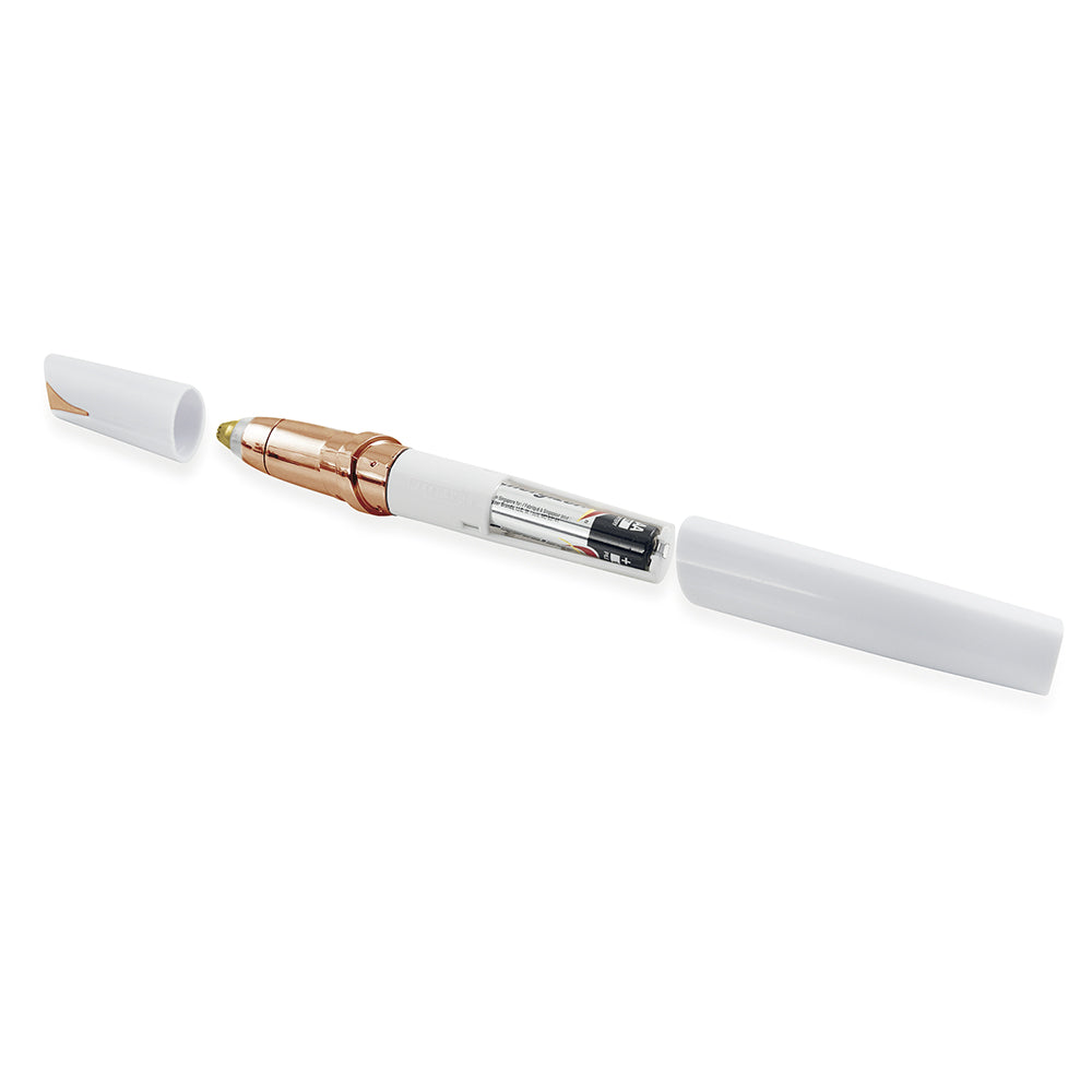Warum Augenbrauentrimmer wählen? Weil es die richtige Wahl für sofortige Ausbesserungen ist. Das kompakte Design macht es perfekt zum einfachen Entfernen der kürzesten, hartnäckigen Härchen von Ihren Augenbrauen, für reizfreie Ergebnisse. Als Ergänzung zum passenden Licht bietet der Trimmer eine einwandfreie und schnelle Behandlung. Kleines Geheimnis Bevor Sie die Augenbrauen fertigstellen, massieren Sie die betroffene Stelle mit einem Zellulosehandschuh und heißem Wasser, um abgestorbene Zellen und andere Verunreinigungen zu entfernen.