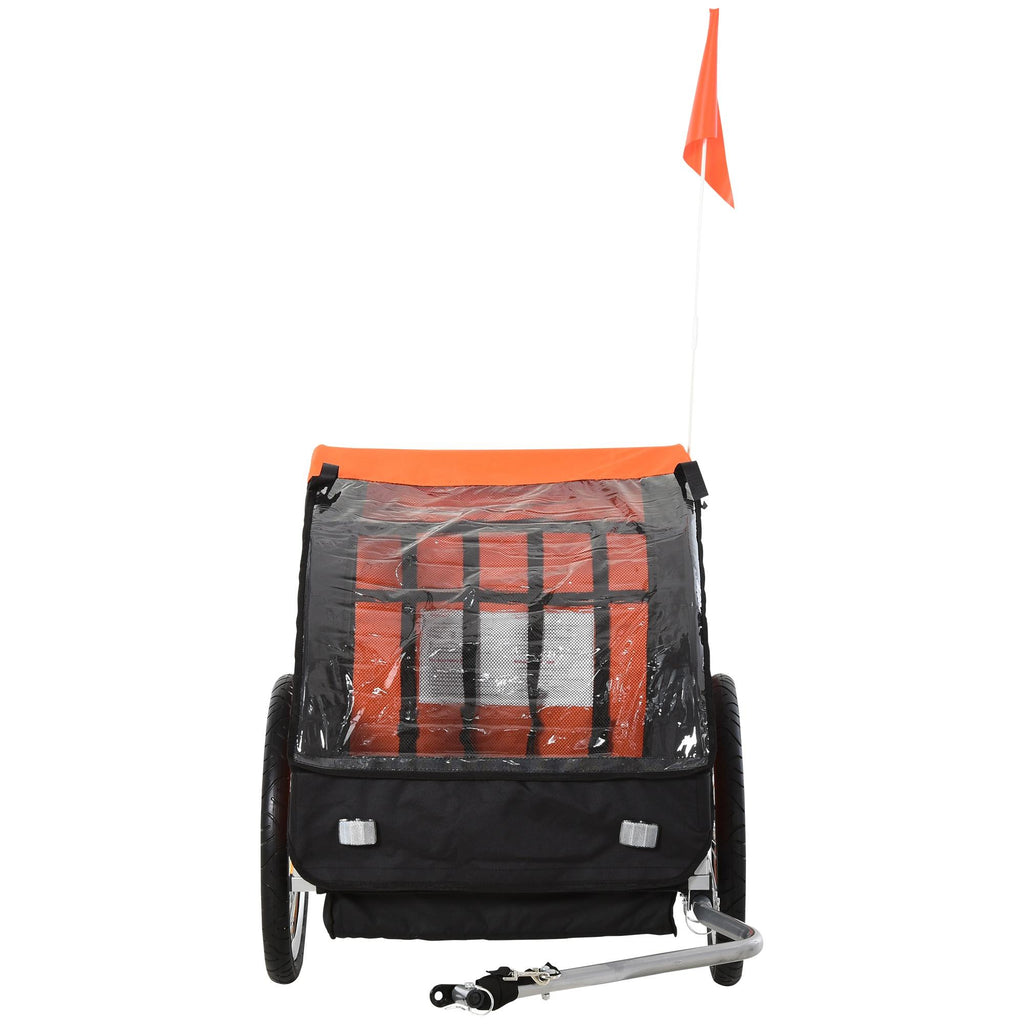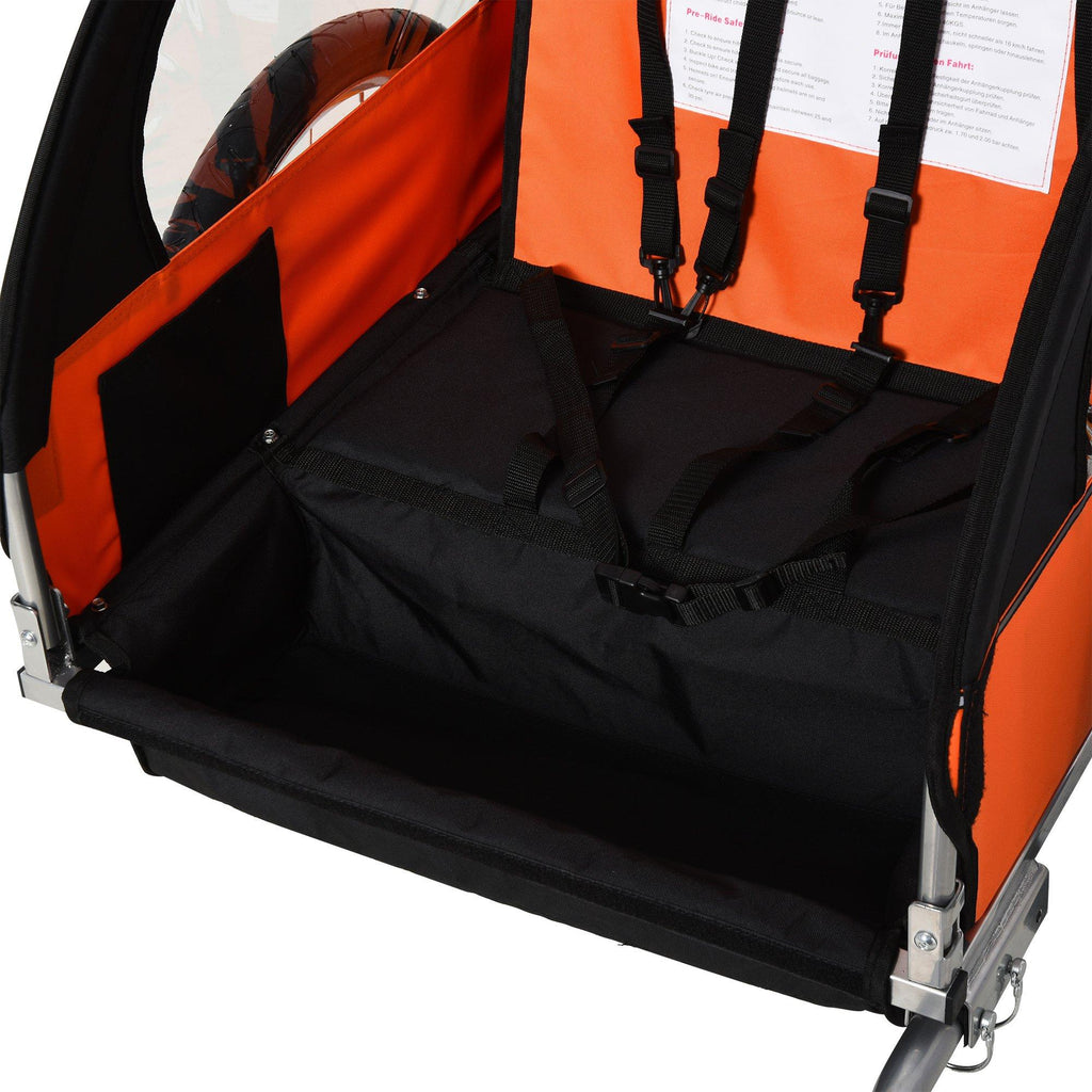 Fahrradanhänger für Kinder 2 Sitze aus Stahl und Stoff in Orange und Schwarz