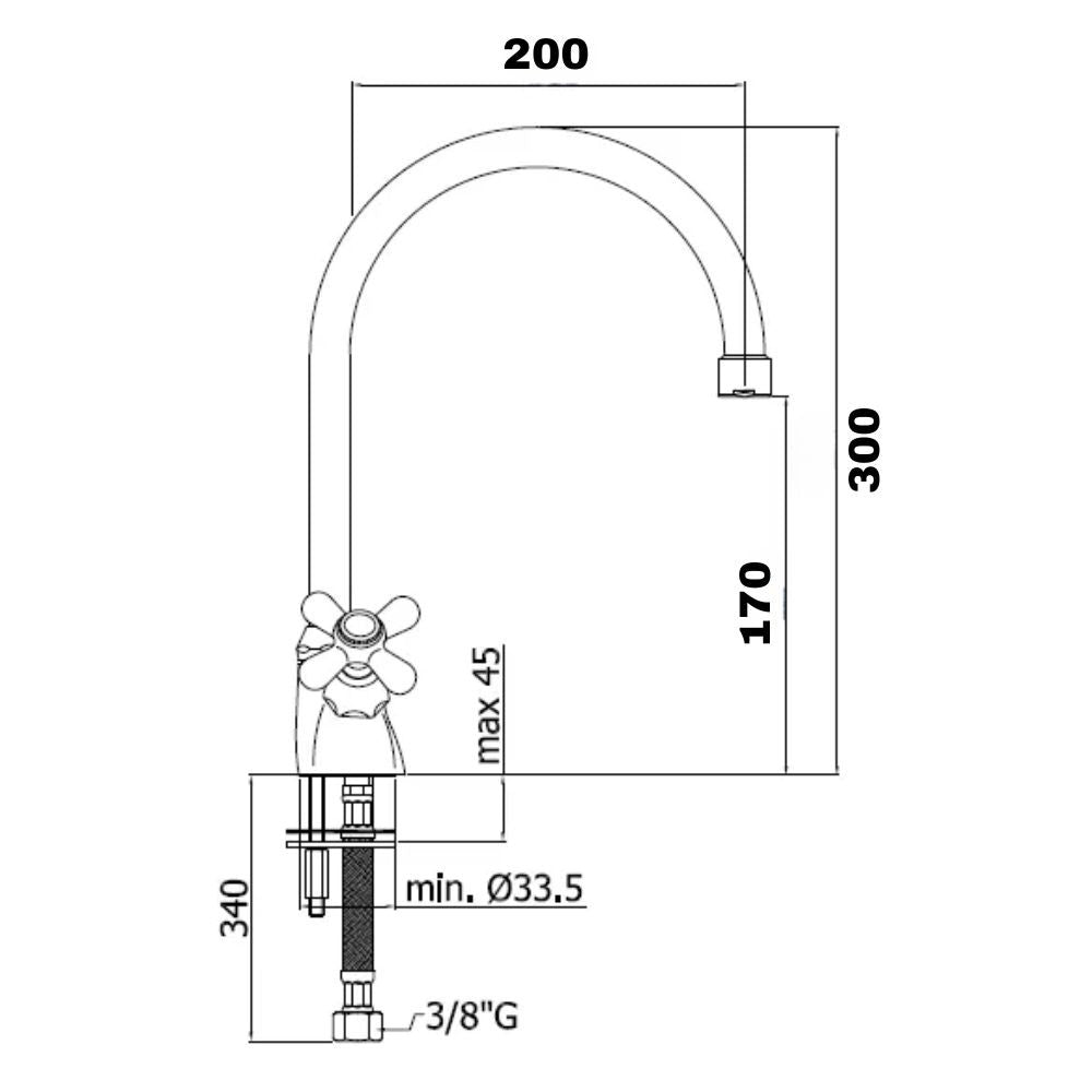Il rubinetto da cucina monoforo bicomando Paini Monaco è perfetto per il lavello della cucina. Realizzato in ottone con una finitura elegante in terra di francia, questo rubinetto aggiunge un tocco di stile e classe alla tua cucina. Con le dimensioni di 30 cm di altezza, 20 cm di larghezza e un diametro di 4,3 cm, questo rubinetto è pratico e funzionale per l'uso quotidiano.