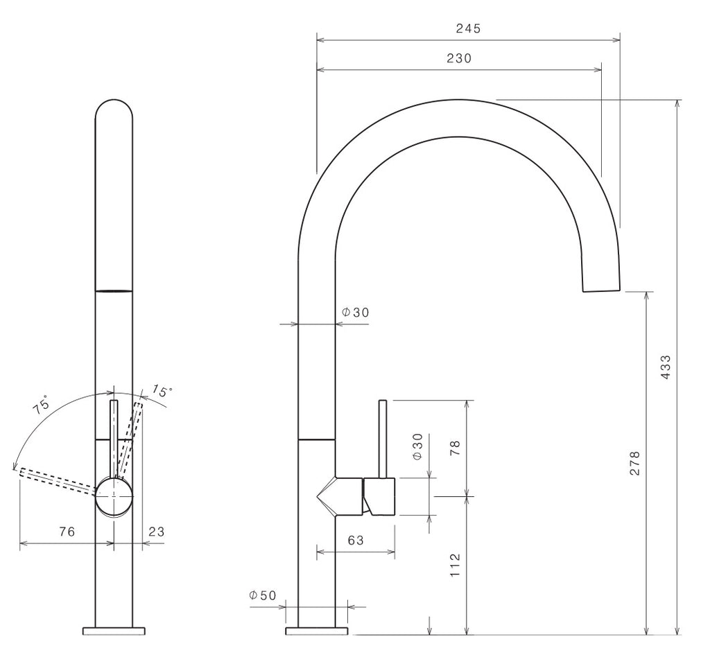 Kitchen River Spültischmischer mit rundem Schwenkauslauf aus Edelstahl.