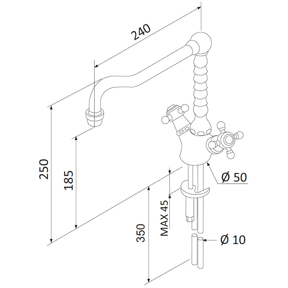 Mariani Tradition 337/TR Doppel-Einhebelmischer für Küchenspüle mit schwenkbarem Auslauf . Schraubverstellung mit ½ Umdrehung Keramikscheiben.