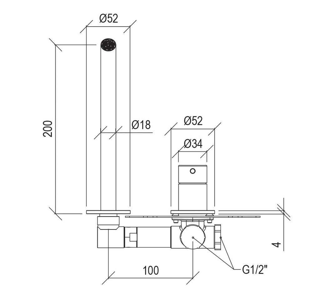 Rubinetto Miscelatore Monocomando a Parete Lavabo Nero Tevere