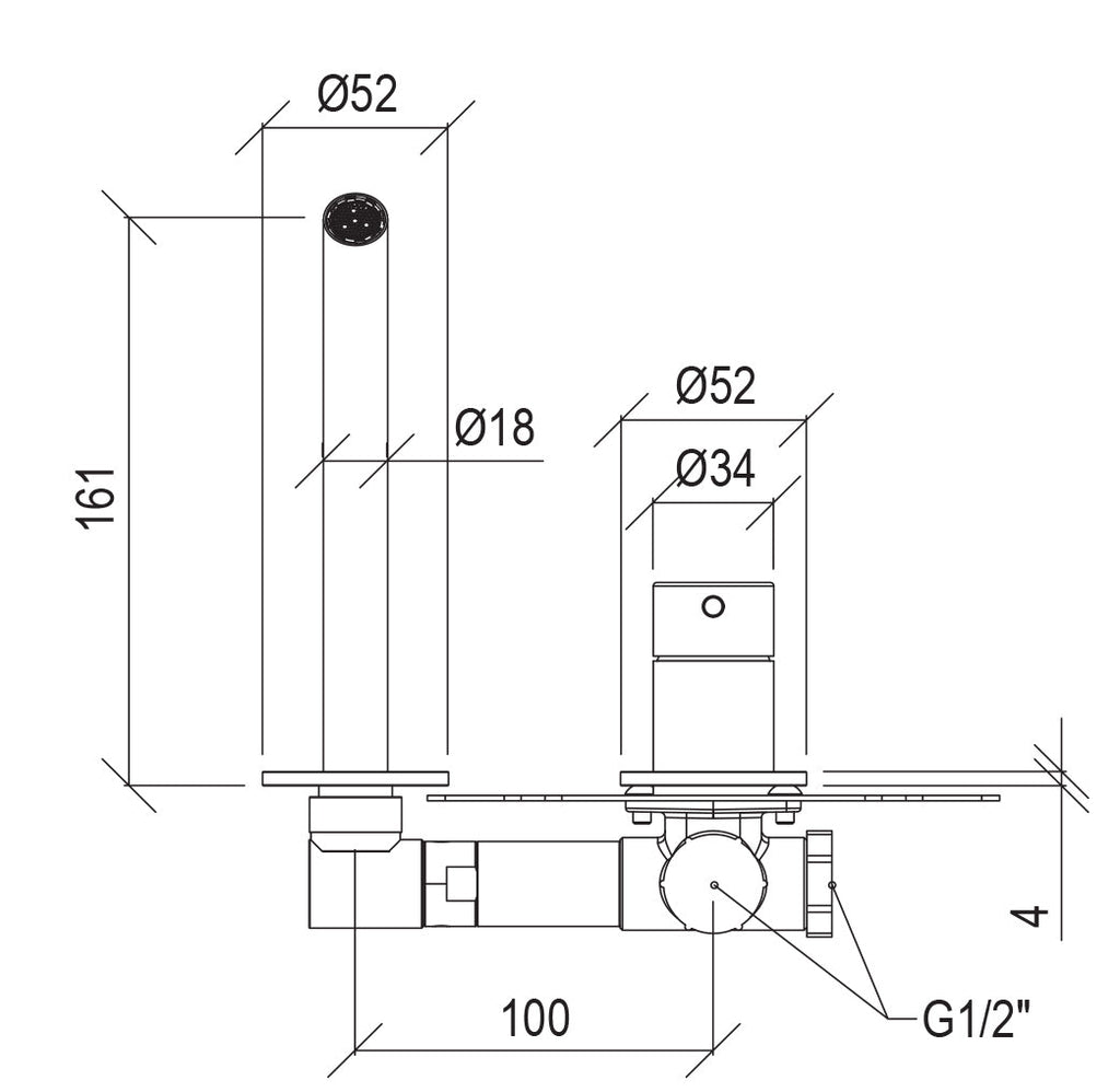 Rubinetto Miscelatore Monocomando a Parete Lavabo Satinato Tevere