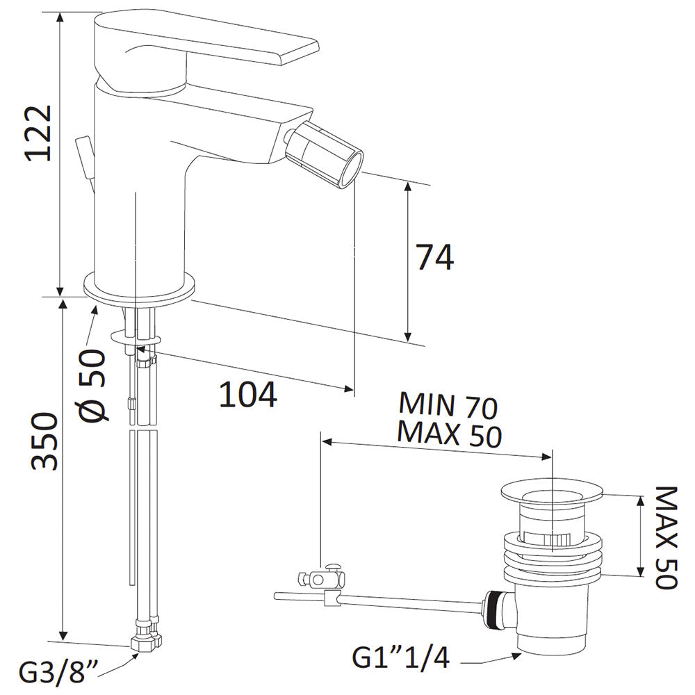 Mariani Artic 393/AT Einhebel-Waschtischmischer mit Ablaufgarnitur . Kartuscheneinstellung Keramikscheibe ø 35 mm.