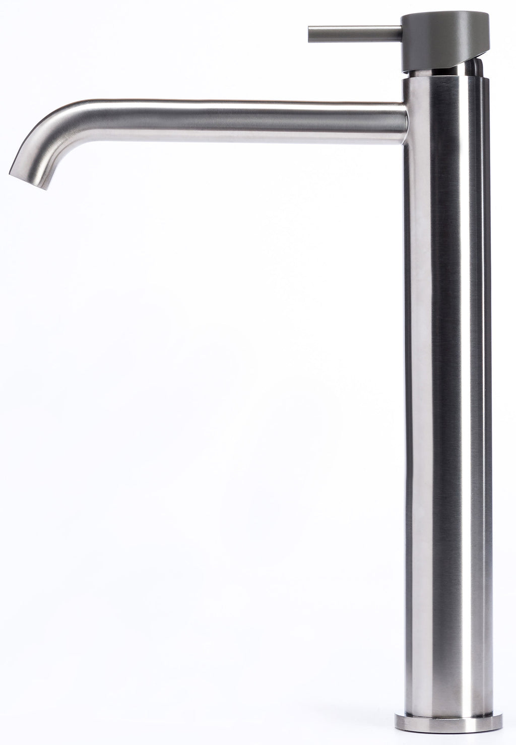 Einhebel-Mischbatterie mit hohem Waschbecken aus mattiertem Edelstahl mit anthrazitfarbenem Griff