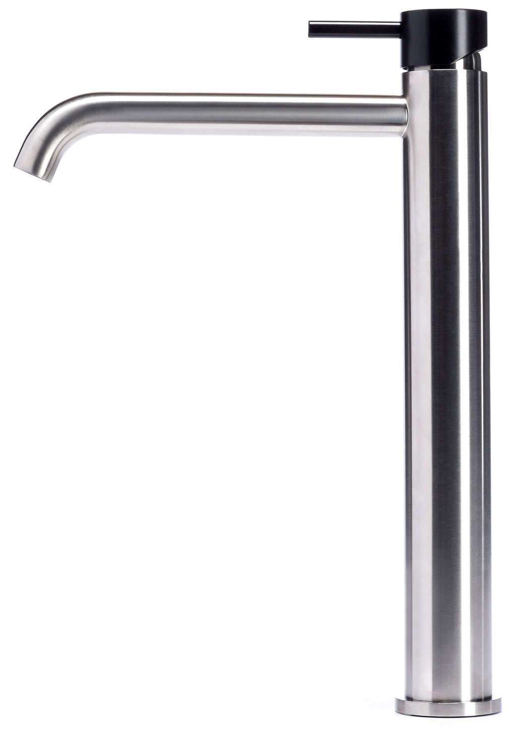 Mischbatterie mit hohem Waschbecken aus satiniertem Edelstahl mit anthrazitfarbenem Griff