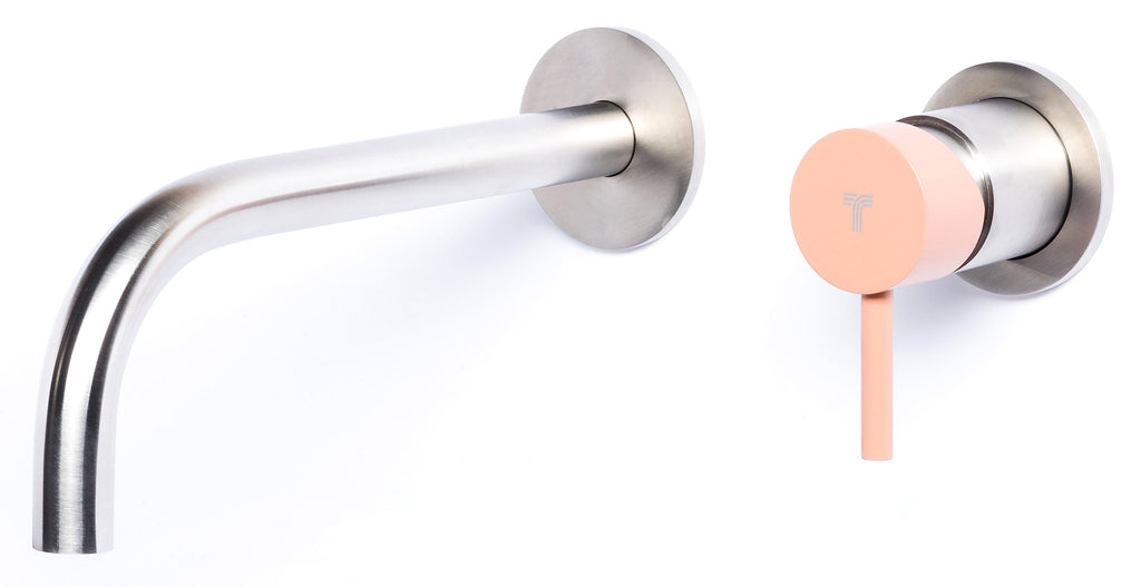 Wand-Einbau-Waschtischmischer aus Edelstahl und Cipria-Griff.
