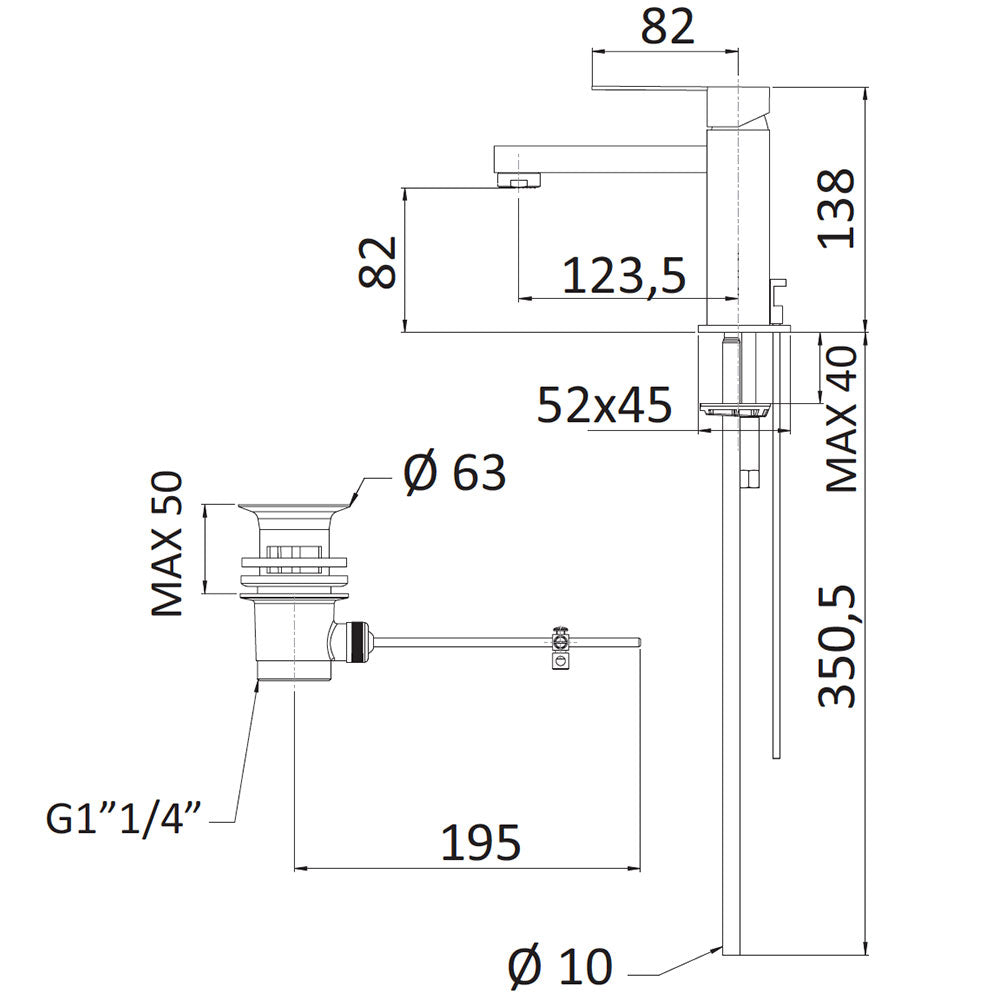 Einhebel-Waschtischmischer mit Ablaufgarnitur Mariani Polar 393/PA . Kartuscheneinstellung mit Keramikscheiben ø 25 mm.
