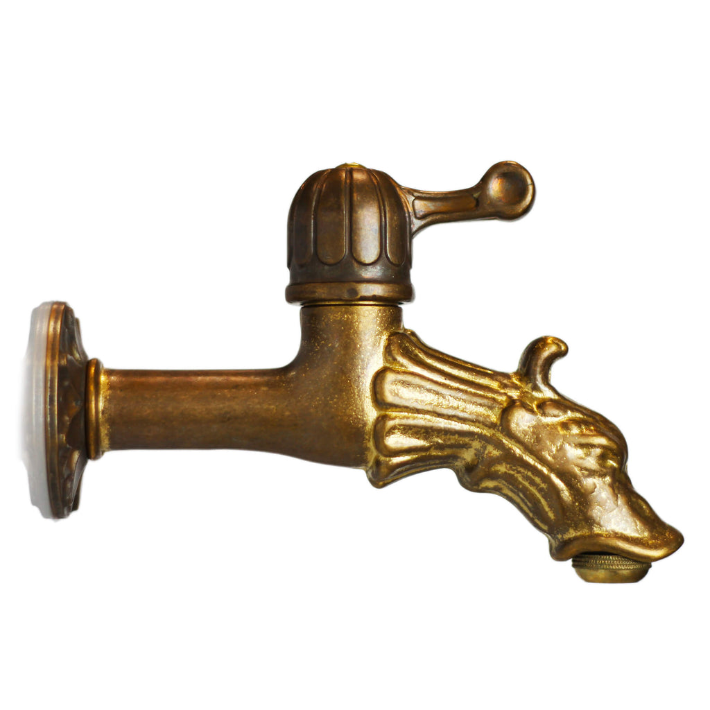 Rubinetto per Fontane da Giardino in Ottone Brunito con Rosone