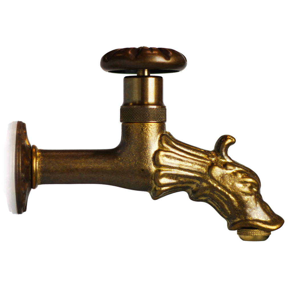 Rubinetto per Fontane da Giardino in Ottone Brunito con Rosone
