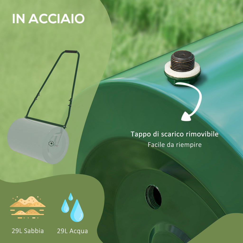 Rullo Compressore per Prato Capacità 63L con Lama Raschiante in Metallo Verde Scuro
