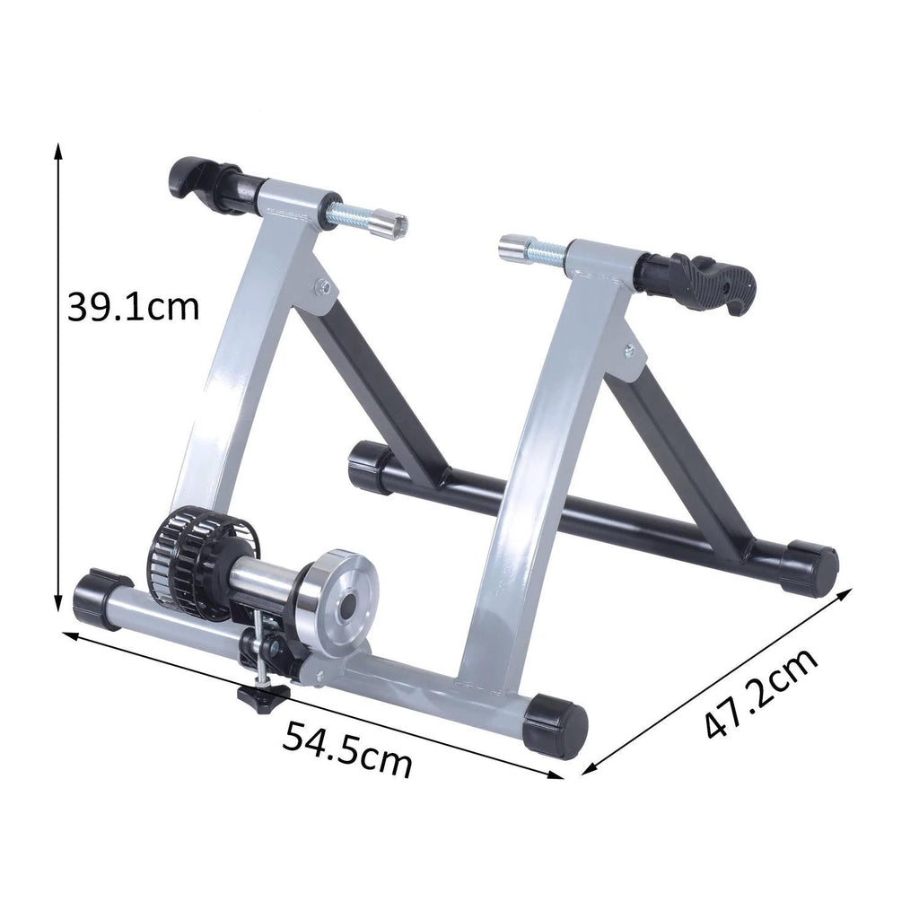 Der HOMCOM Faltradtrainer hat einen stabilen Rahmen aus Stahl. Schließen Sie einfach das Hinterrad an, um Ihr Fahrradtraining auch zu Hause zu beginnen. Bleiben Sie auf Ihrem Fahrrad innerhalb und außerhalb des Hauses in Bewegung!