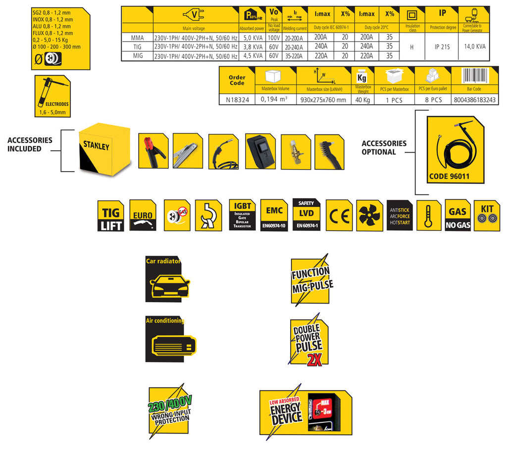 Multiprozess-Schweißgerät WIG MIG MAG MOG und MMA Inverter Stanley Top MIG 2500 Pulse