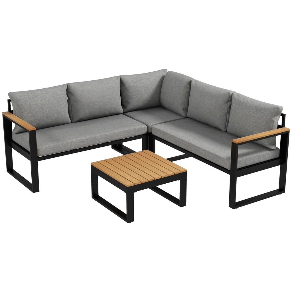 Salotto da Giardino con 2 Divanetti Seduta Angolare e Tavolino con Piano a Doghe Grigio