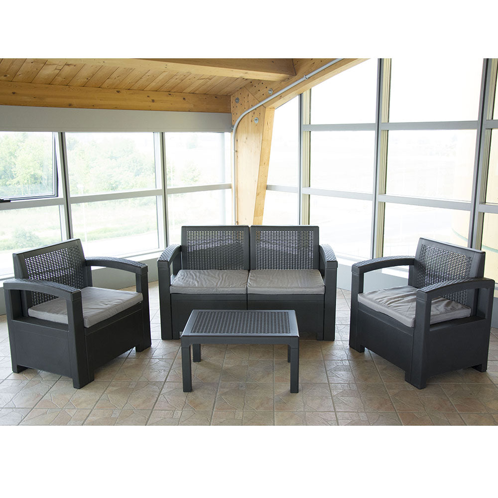 Wohnzimmer-Sofagarnitur mit Sesseln und Couchtisch aus stoßfestem Kunstharz für Gartenmöbel in Anthrazit
