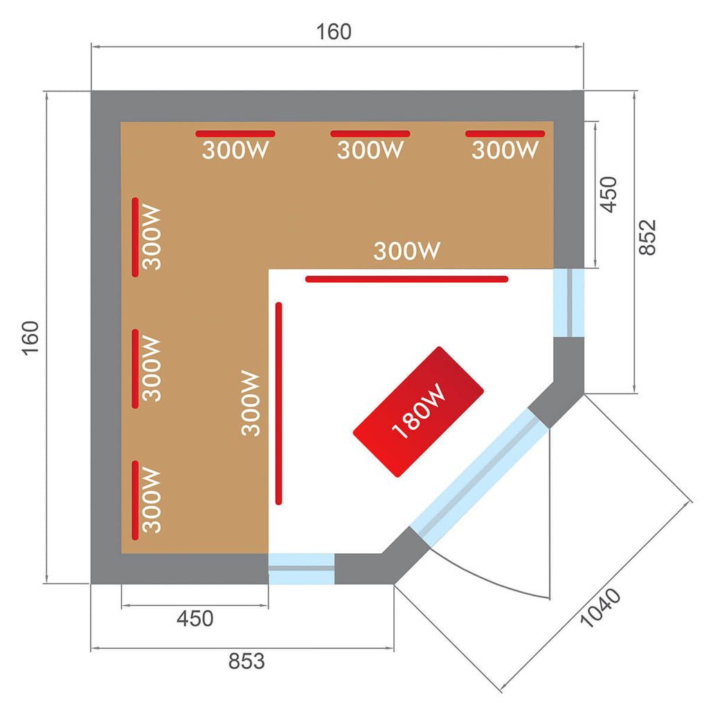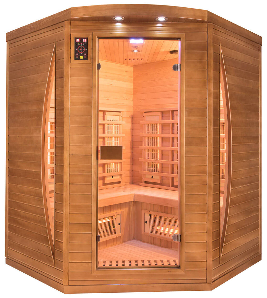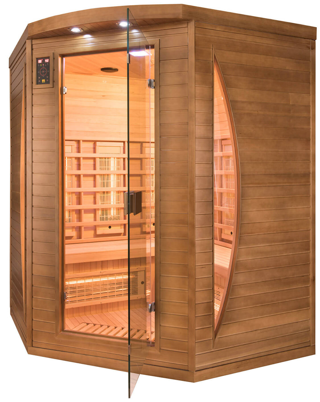Finnische Infrarotsauna 3 Plätze 160x160 cm H200 mit Farbtherapie aus Tannenholz Spectra 04C