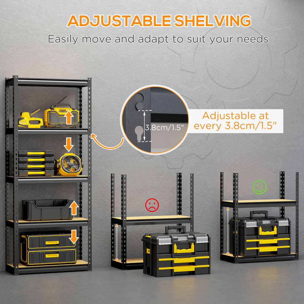- GERÄUMIGER RAUM: Dieses Industrieregal aus pulverbeschichtetem Stahl ist robust genug, um Feuchtigkeit und schweren Lasten standzuhalten. Das freistehende Regal eignet sich perfekt für schwere Gegenstände mit einer maximalen Belastung von 300 kg oder bis zu 75 kg gleichmäßig verteilt auf alle fünf Regale
