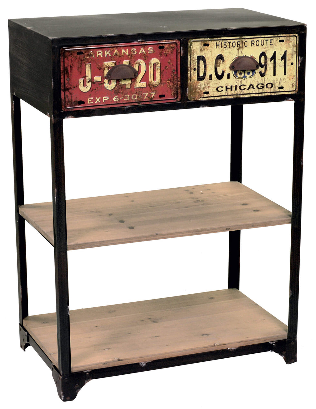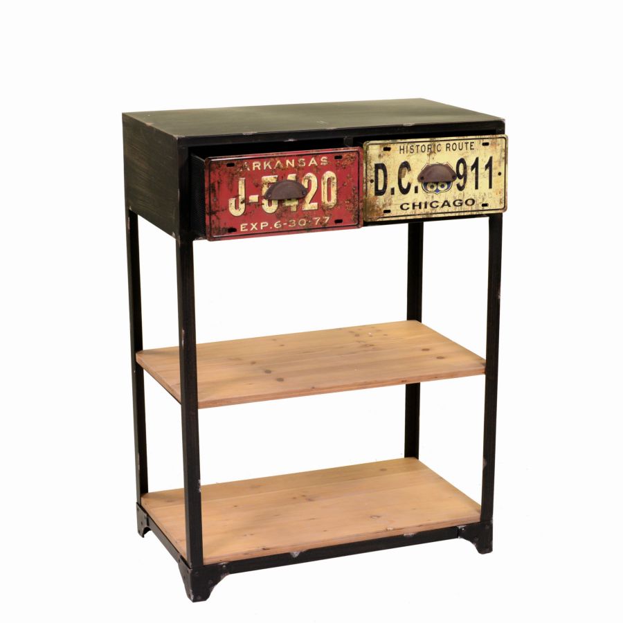 Holzregal mit 2 Schubladen + 3 Einlegeböden 66x38H91 cm