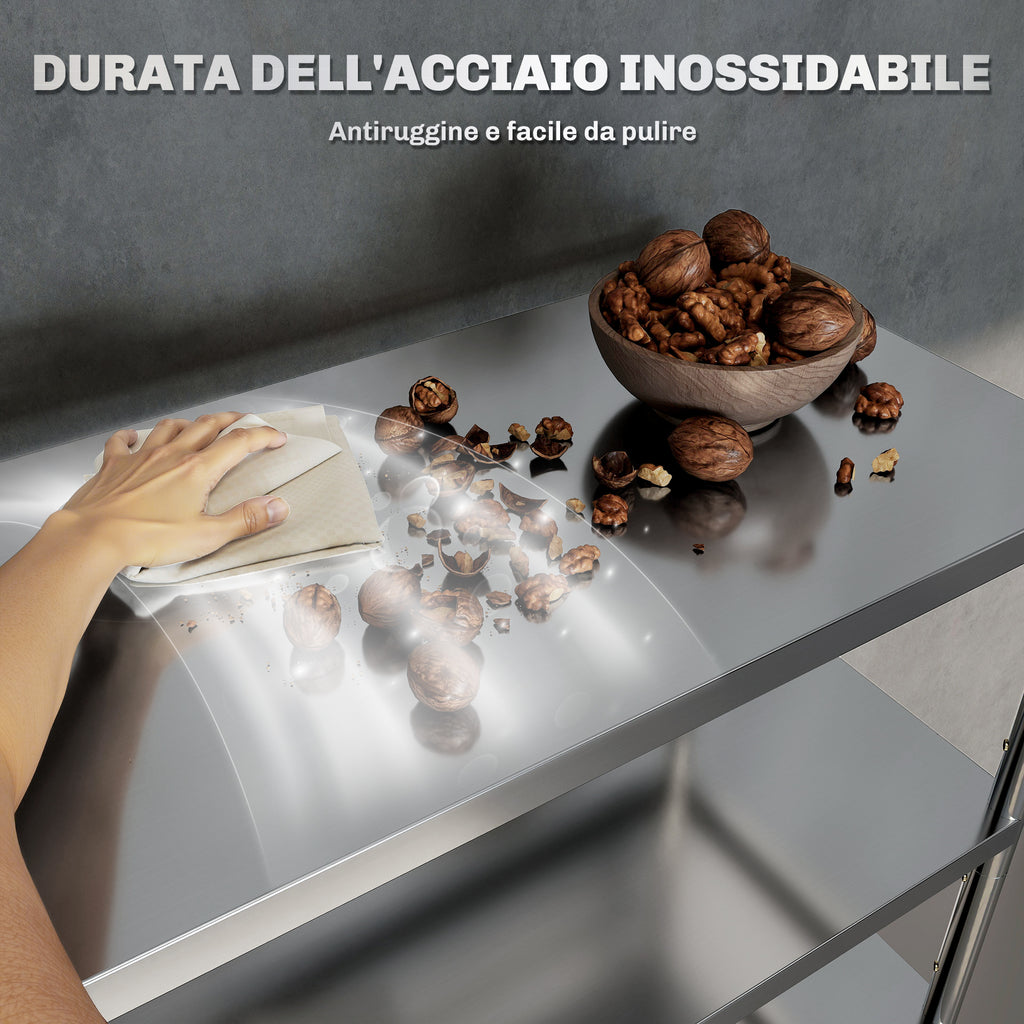 - STRUTTURA IN ACCIAIO: Fabbricato in acciaio inox 201, questo mobiletto scaffale è resistente a ruggine e macchie, ideale per spazi umidi come cucine e bagni. Il suo elegante colore argento si fonde perfettamente con qualsiasi tipo di arredamento domestico