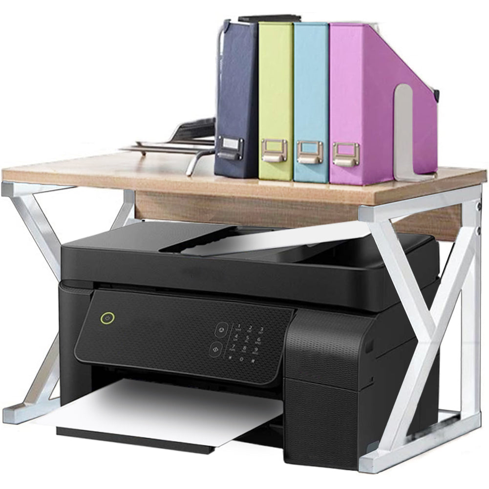 - 1 x Supporto per Stampante Scaffale Portaoggetti Multiuso Legno e Bianco 2 Livelli