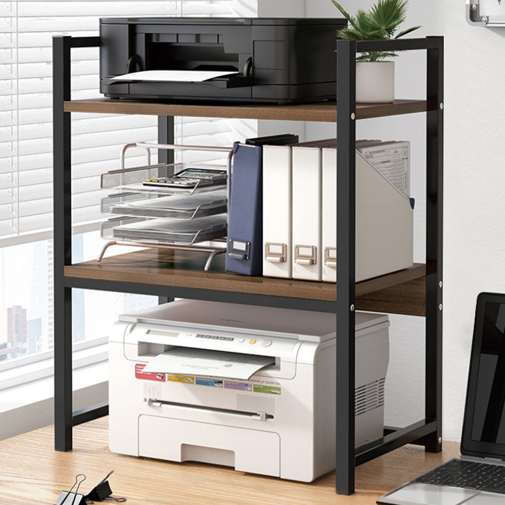 Scaffale da Scrivania Multiuso 3 Ripiani 53x35x80 cm per Stampante Ufficio in MDF Noce e Nero