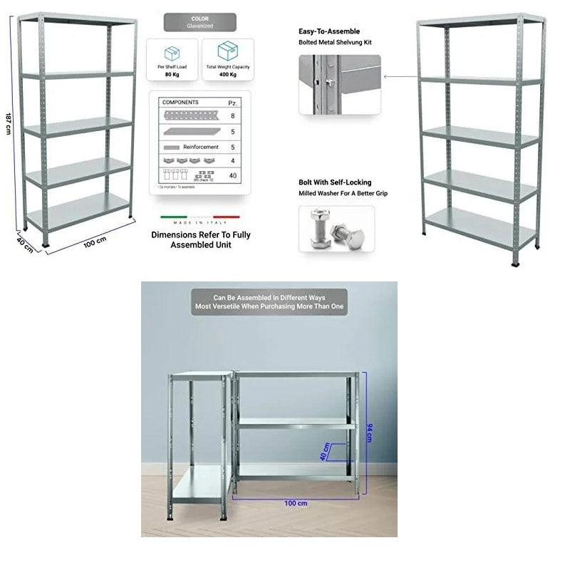 Galvanisiertes Metallregal 5 Regale 100x40x187 cm Ettore