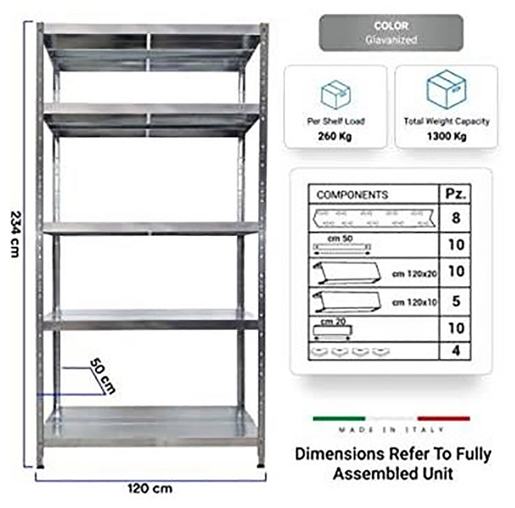 Metallregal 5 Regale 120x50x234 cm Maciste Verzinkt