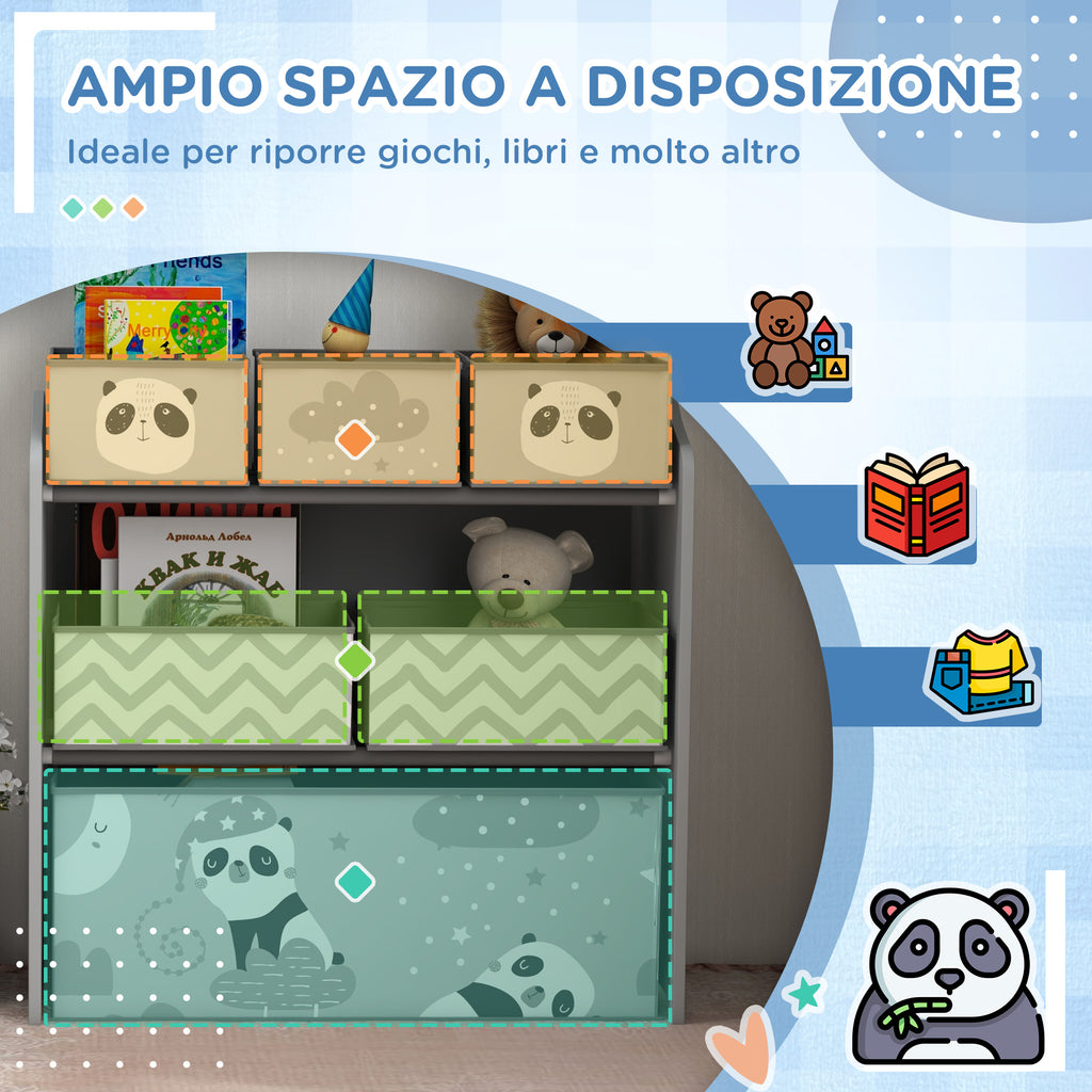 Scaffale Portagiochi con 6 Contenitori in Tessuto 63x30x66cm Grigio