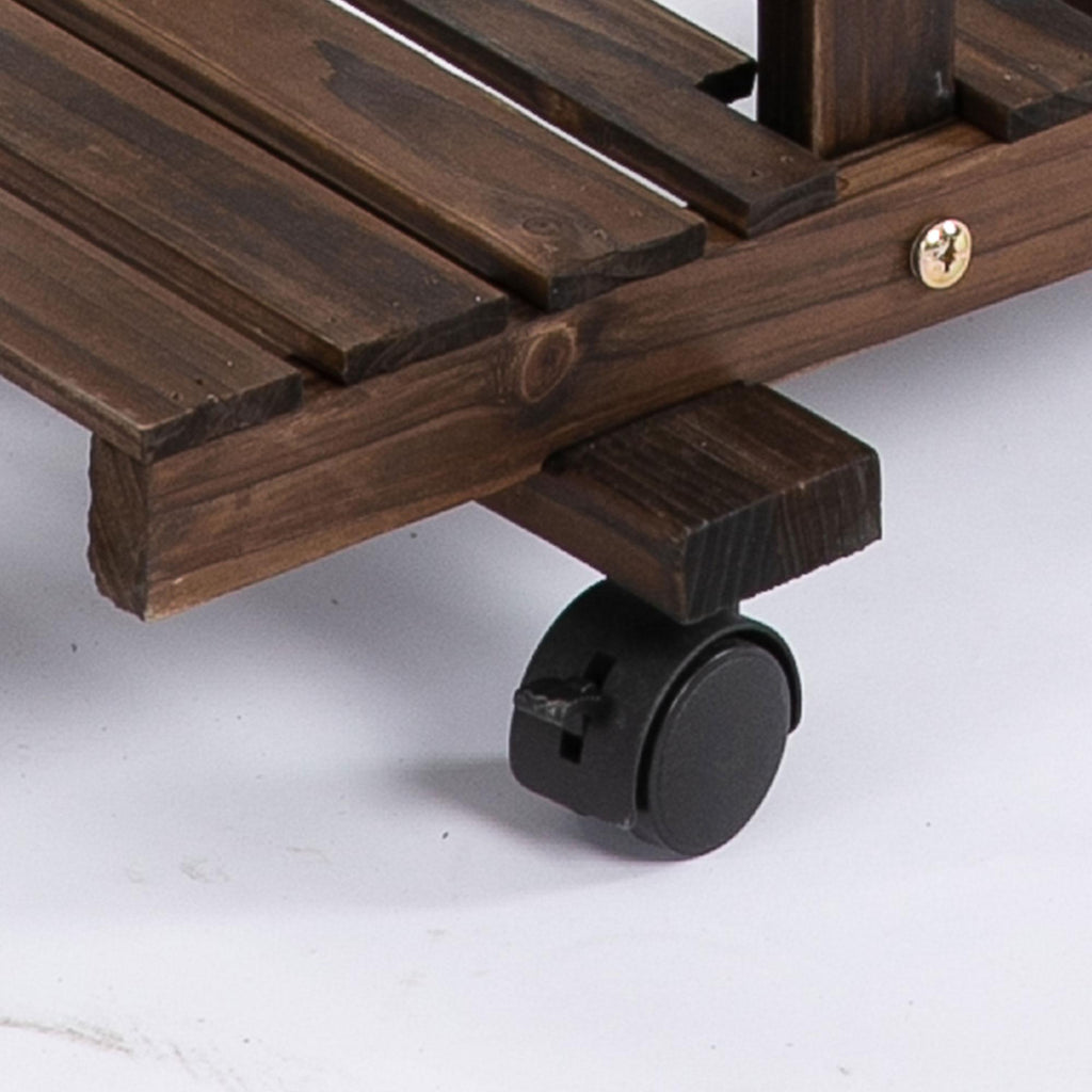 Präsentieren Sie Ihre Pflanzen mit diesem Pflanzenständer aus Holz! Das 4-stufige Design bietet ausreichend Stauraum für Ihre Vasen und andere Haushaltsgegenstände und hilft Ihnen, Unordnung auf dem Boden zu reduzieren, indem Sie vertikalen Raum nutzen. Dieses Pflanzgefäß für den Außen- und Innenbereich ist mit 4 praktischen Rädern ausgestattet, von denen 2 mit Bremsen ausgestattet sind, um es leicht zu bewegen und stabil in der gewünschten Position zu arretieren. Langlebig und robust, bringt dieses gestufte Pflanzenregal Stil und Eleganz auf Ihre Veranda, Terrasse und andere Außenbereiche.