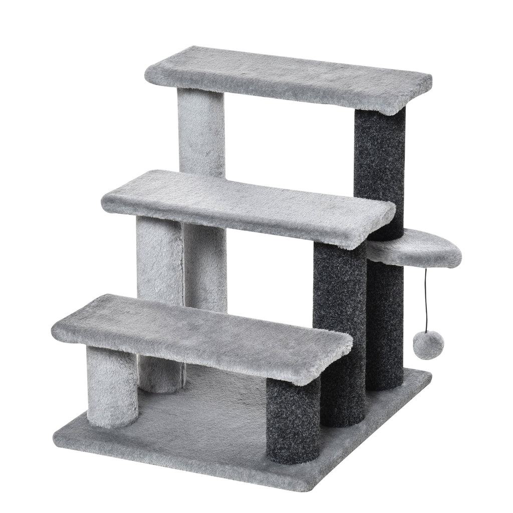 Scaletta per Gatti a 3 Gradini 45x40x48 cm in Flanella Grigio