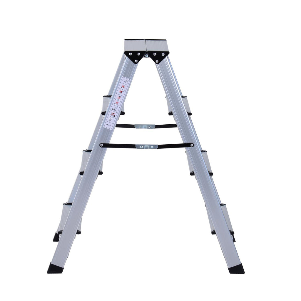 Diese Doppelstehleiter bietet eine große Hilfe für leichte Wartungsarbeiten rund ums Haus oder im Freien. Robust und stabil, aus hochwertiger Aluminiumlegierung. Es kann eine maximale Belastung von 150 kg tragen. Die 4 rutschfesten Füße sorgen für maximale Stabilität und Sicherheit. Sehr leicht und praktisch dank der faltbaren Struktur.