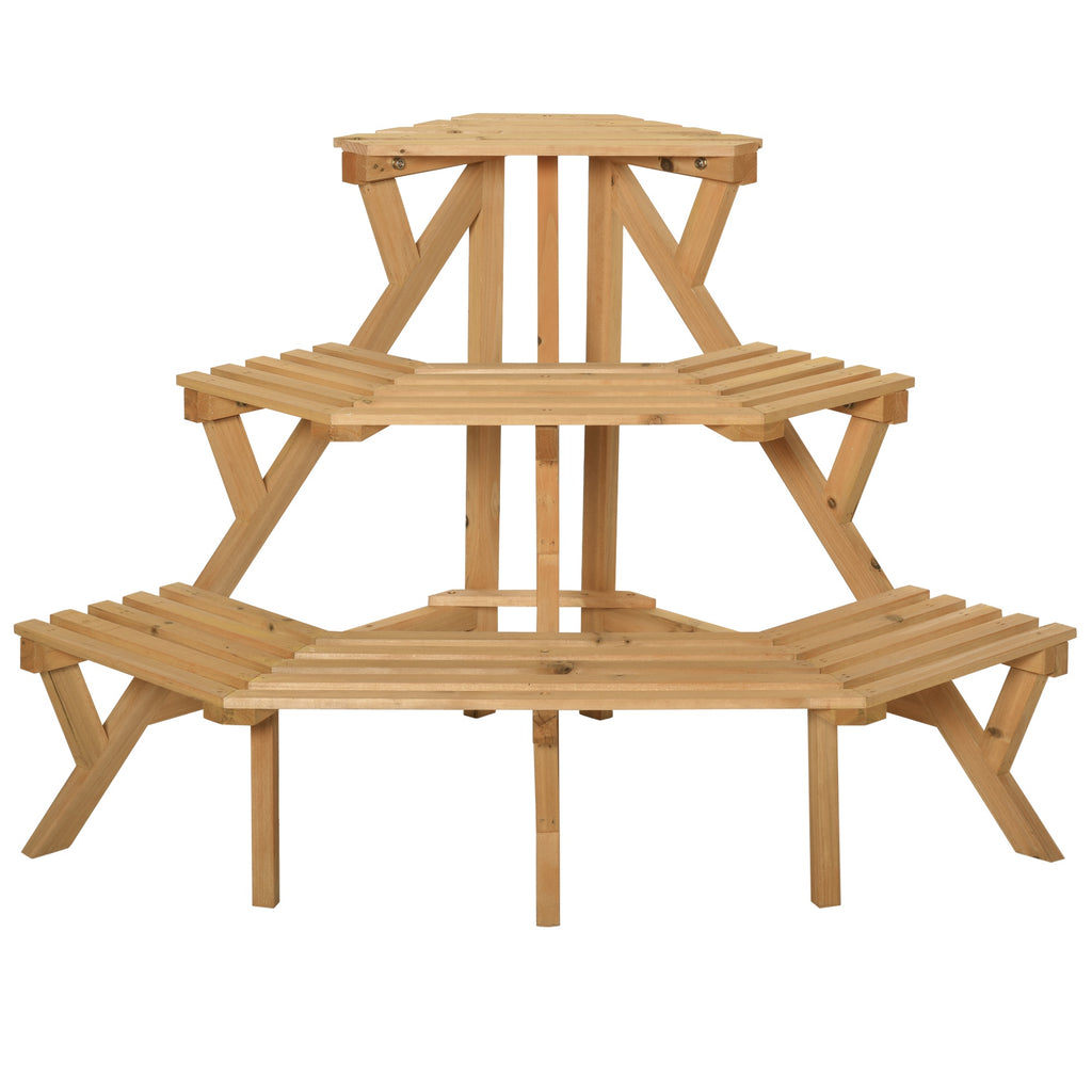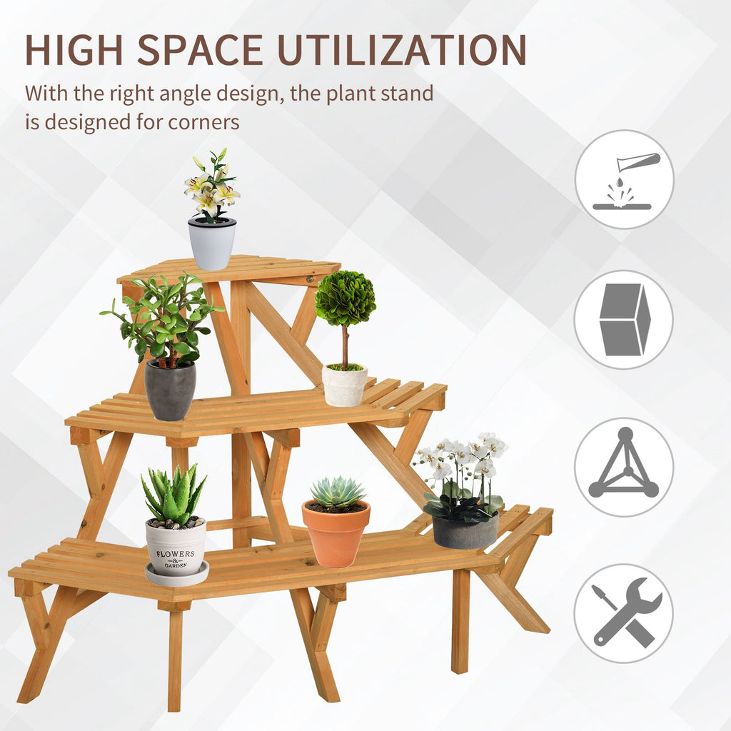 Dieser Eck-Pflanzenständer aus Holz von ist eine ideale Ergänzung für Ihre Terrasse und Ihren Garten. Dank der 3 Ebenen bietet es Ihnen viel Platz zum Aufbewahren Ihrer Pflanzen, um jede Ecke optimal zu nutzen. Die Holzstruktur ist robust und verleiht Ihren Räumen ein rustikales Aussehen. Sie können dieses Eckregal verwenden, um Ihre Vasen oder Dekorationsartikel zu präsentieren und Ihren Außenbereichen einen Hauch von Neuheit zu verleihen.