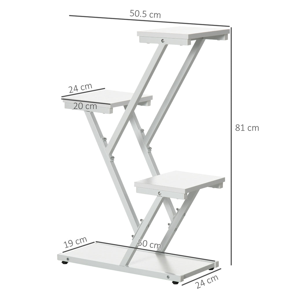 Leitertopfhalter auf 4 Ebenen für drinnen und draußen 50,5 x 24 x 81 cm aus MDF und weißem Stahl