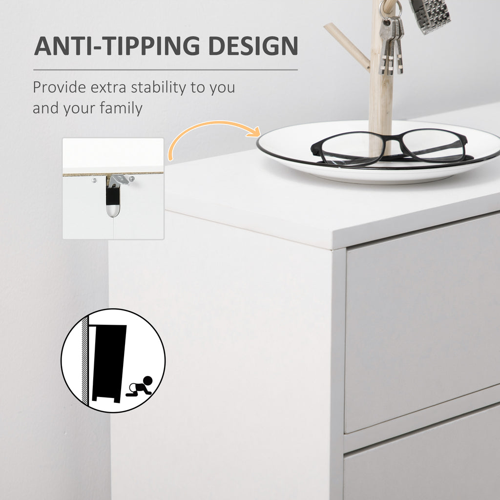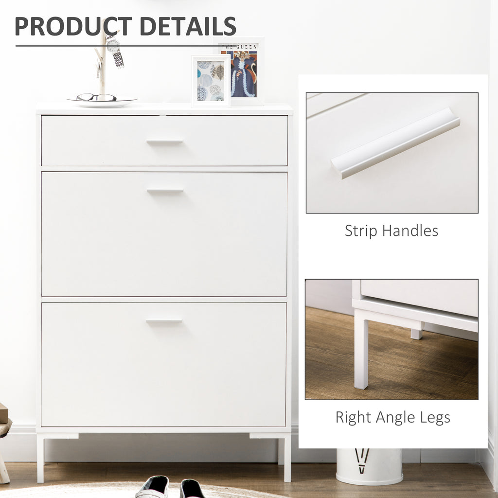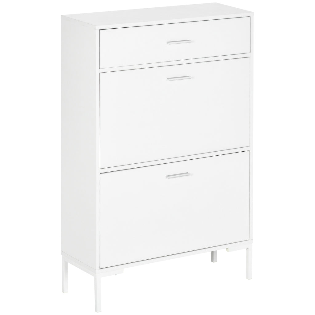 Scarpiera 12 Paia di Scarpe 76x26x110 cm 2 Ante a Ribalta e Cassetto in MDF e Metallo Bianco