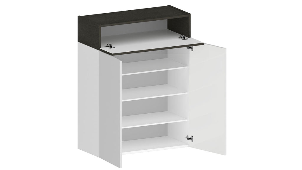 Scarpiera 2 Ante e 1 Ripiano a Ribalta 76x35x100 cm Savona 2A 1R Bianco Opaco/Grigio Ardesia
